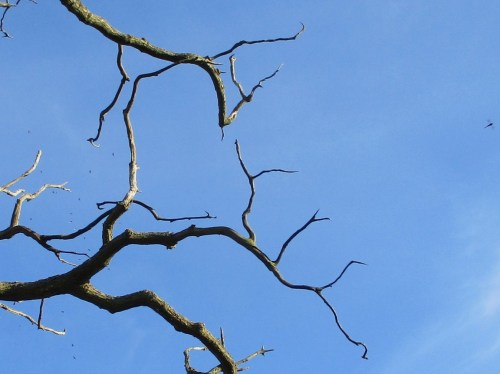 Hier aber, rings um den Bach und insbesondere in den Zweigen der toten Eiche, tobt das Leben. Aus dem Wasser geschlüpfte Köcherfliegen vollführen ihren Hochzeitstanz – zu Hunderten.