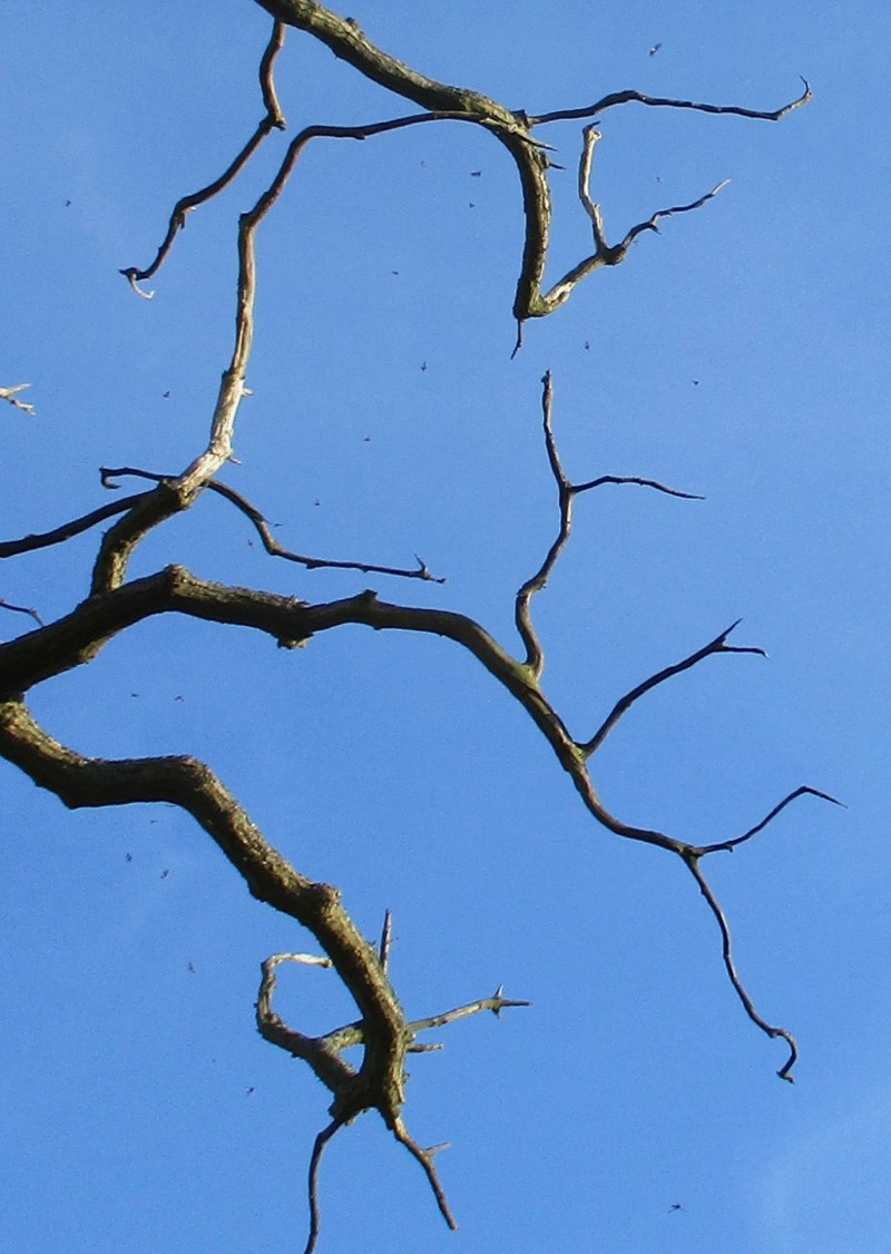 Hier aber, rings um den Bach und insbesondere in den Zweigen der toten Eiche, tobt das Leben. Aus dem Wasser geschlüpfte Köcherfliegen vollführen ihren Hochzeitstanz – zu Hunderten.