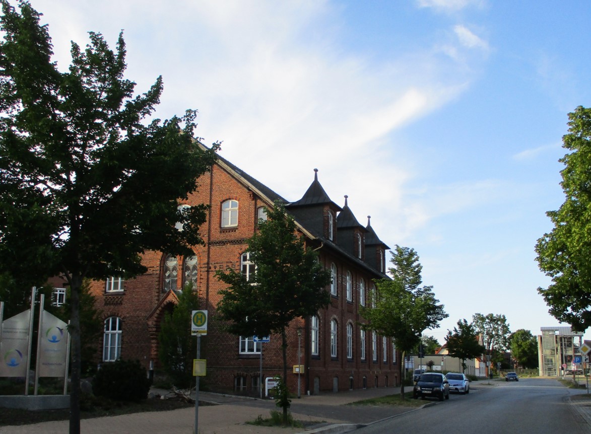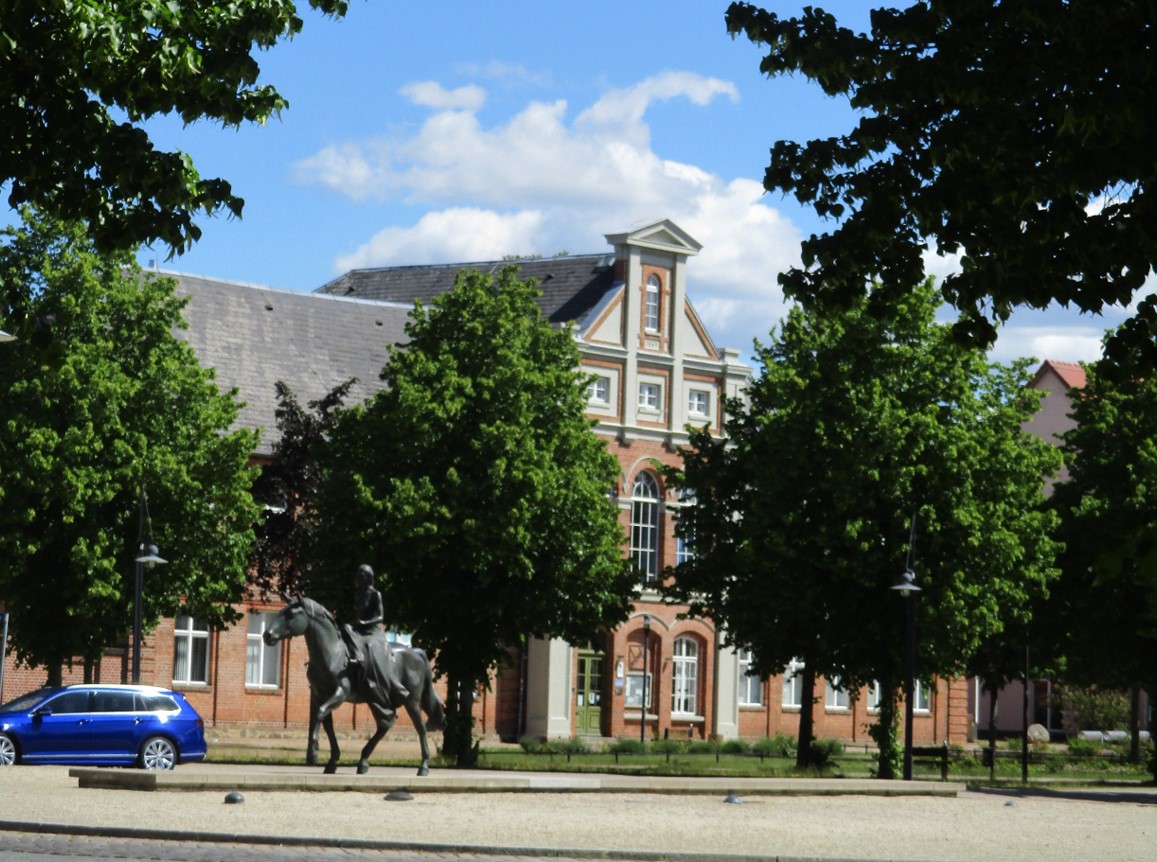 Bald sind wir in Ludwigslust angekommen, queren die Bahnstrecke wieder per Fahrstuhl – Brücke – Fahrstuhl.