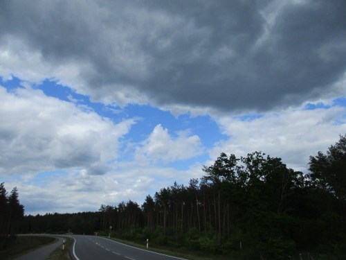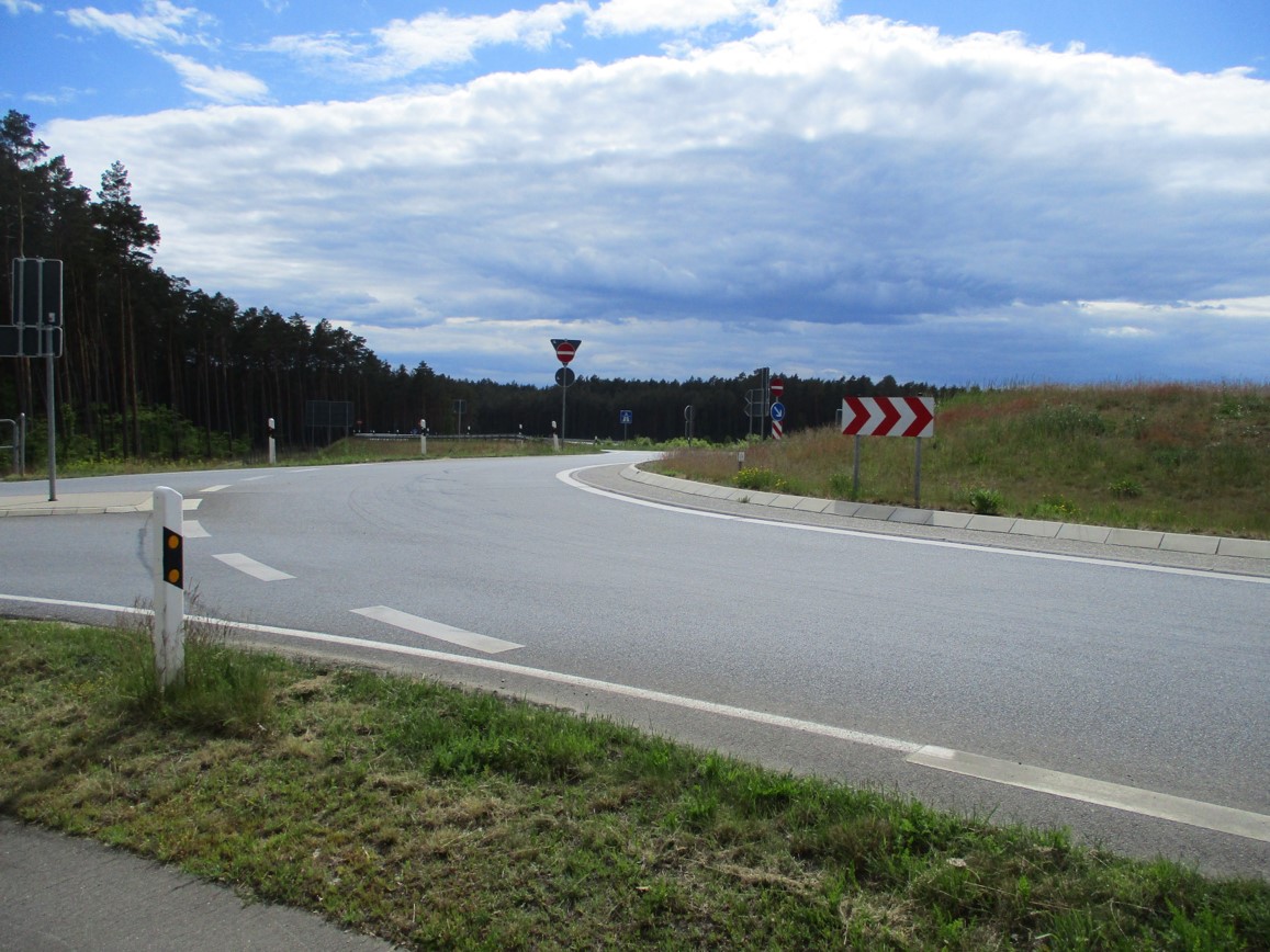 Wir haben uns gegen weiteres Waldwegfahren entschieden, biegen nach links auf eine Landstraße ohne Radweg ab, um die Landesstraße „mit“ zu erreichen.