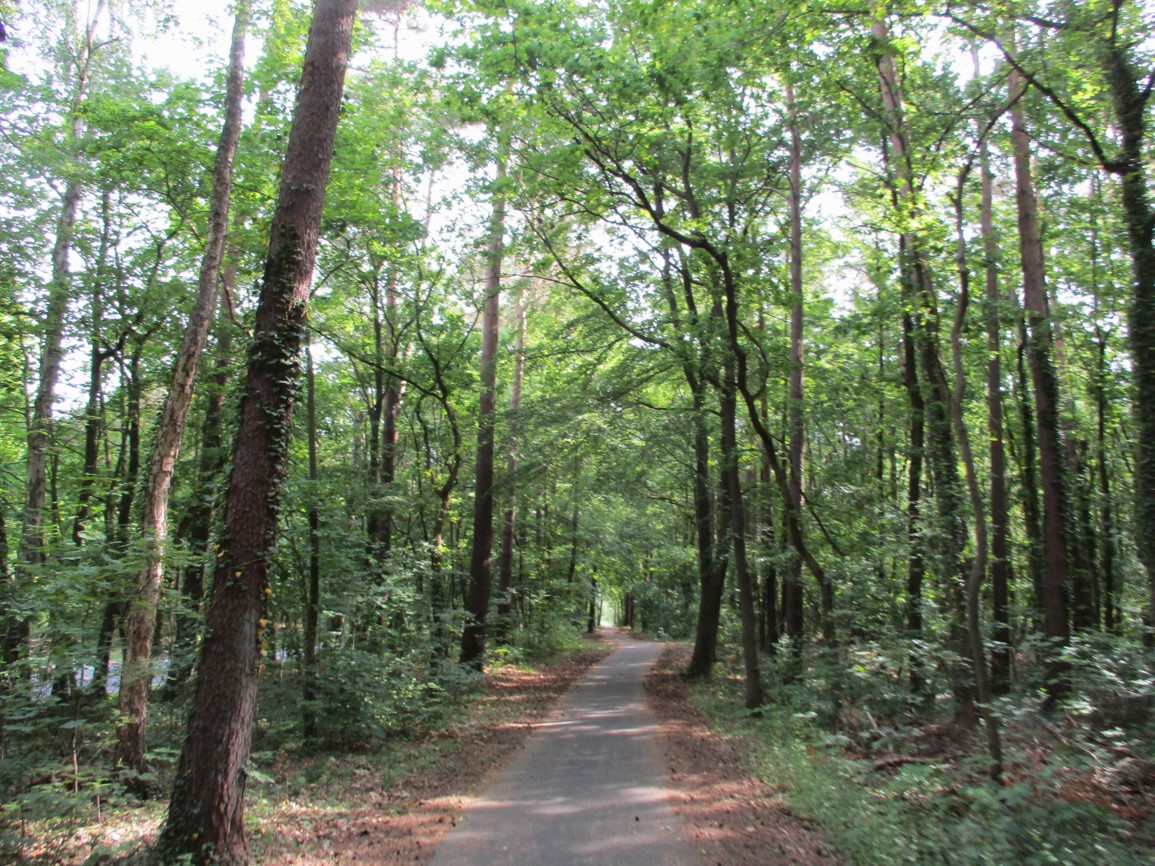Letzte Etappe Rückweg – es geht wieder auf gewundenem Radweg durch (erfrischend!) halbschattige Waldpartien.