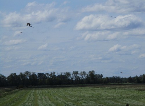Die Sonneneinstrahlung bescherte uns mehrfach (scheinbar) „weisse Vögel“ – Silberreiher? Weisstörche, wo ist der Schwarzanteil geblieben? Kraniche …? – Über die Zeit wurde klar, wir waren einem Beleuchtungseffekt aufgesessen. Die Vögel waren durchweg Graureiher, alt und jung.