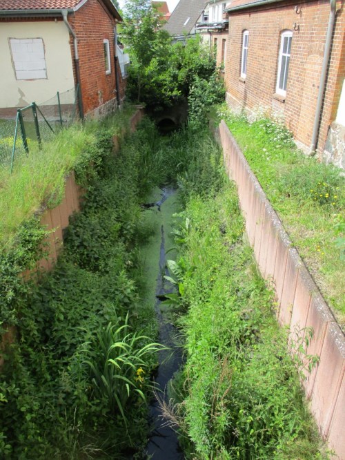 In der Tat, da fliesst ein Wässerchen zwischen beiden Straßen, weiter parallel zum Burggraben, in die Elde.