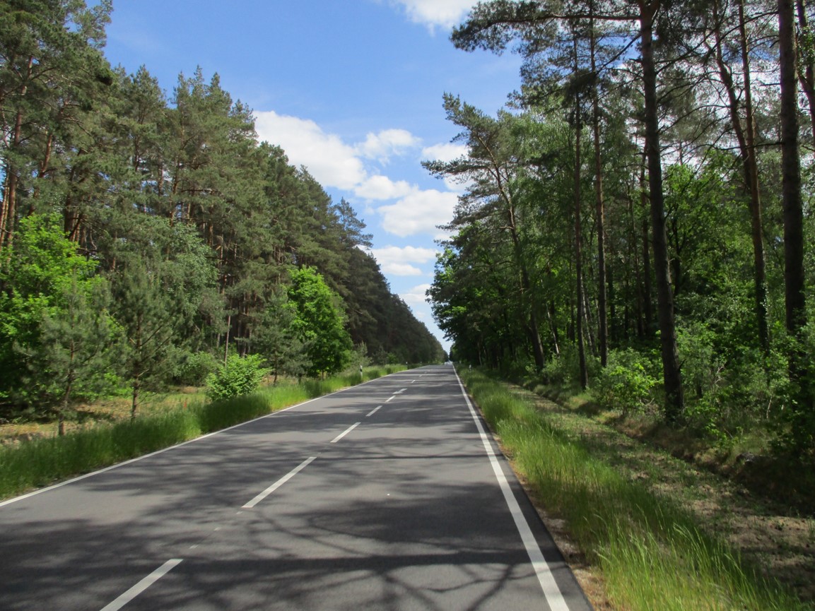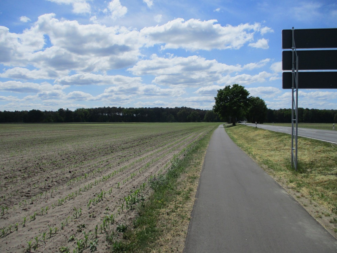 Wir haben uns gegen weiteres Waldwegfahren entschieden, biegen nach links auf eine Landstraße ohne Radweg ab, um die Landesstraße „mit“ zu erreichen.