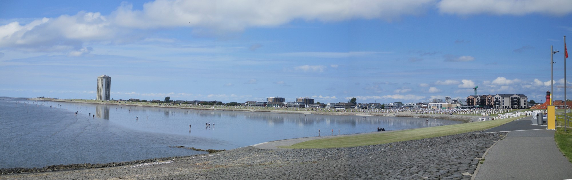 Hier die Tourismusseite Büsums, von der Westmole bei Tnw gesehen. Gut Abstand zwischen den Touristen an der Waterkant.
