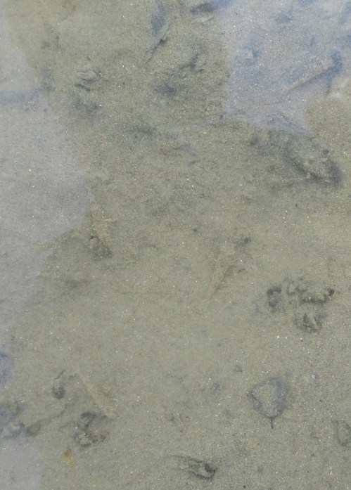 Und dann ist das Watt, wo immer noch ein Film Wasser vorhanden ist, natürlich voll von fast allen Größen der Nordseegarnele.