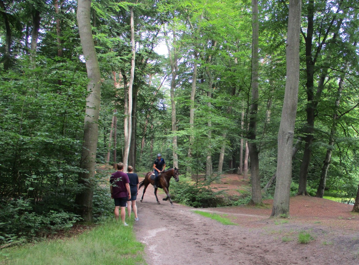 Auch wenn`s ruhig scheint, Vorsicht! Reitwege queren – hier ein Herrenreiter mit eingebauter Vorfahrt und forschem Tempo.