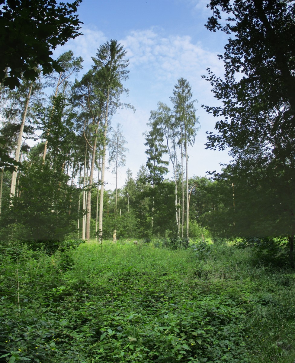 Nebendran zeigt eine aufgelichtete Fläche, dass Förster und Forstmeister Sturm am Zukunftswald arbeiten.