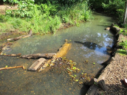 Igitt – „tief“ im Detail. Bei solch schwacher Wasserführung bewirken selbst die Totholzlenker keinerlei belüftende und klärende Verbesserung.