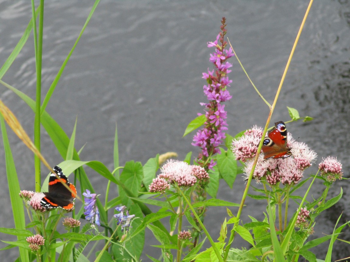 In Gärten seit geraumer Zeit zu sehen, jetzt auch in freier Wildbahn, an Bächen Schleswig-Holsteins: Der Dost zaubert Schmetterlinge herbei.