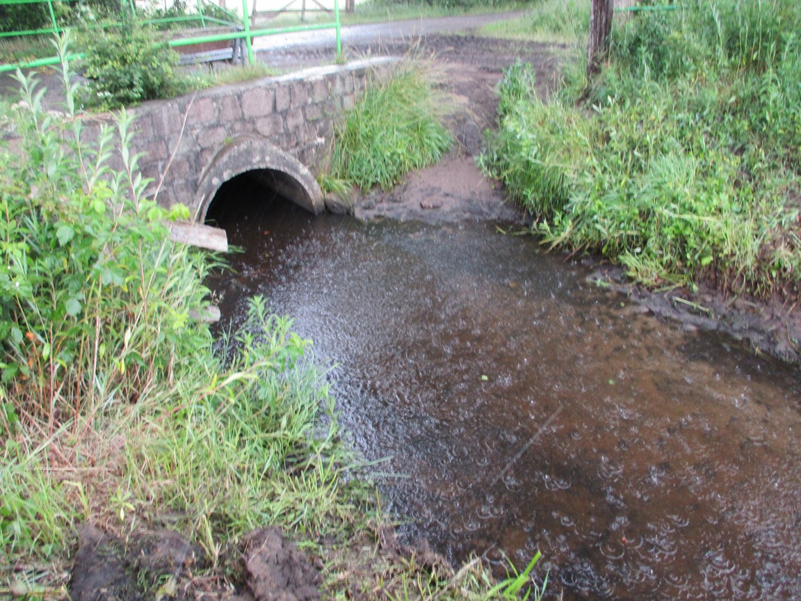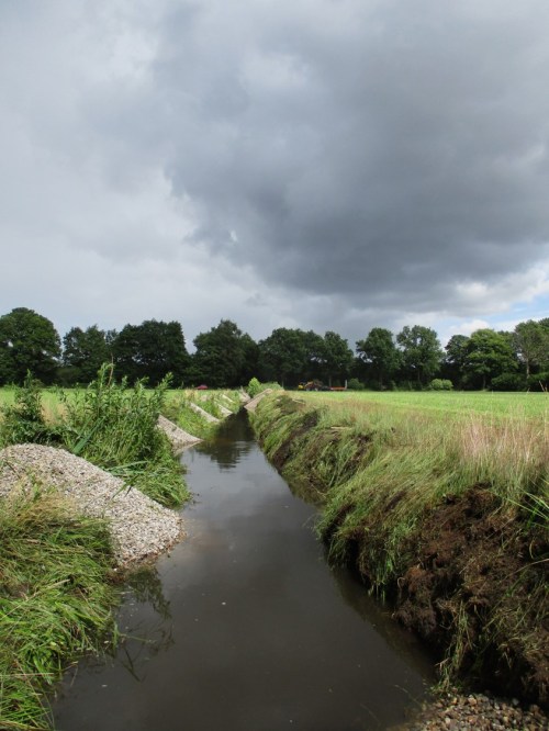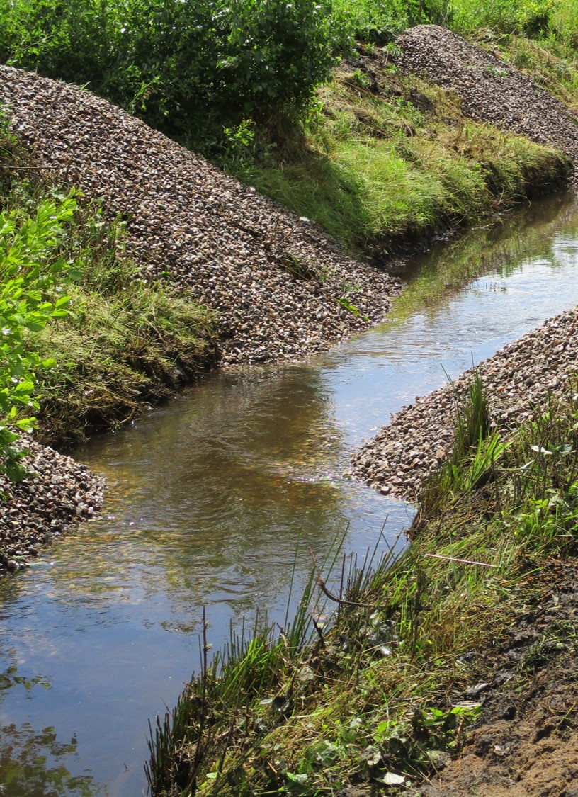 Etwa in Streckenmitte harke ich so etwas wie eine Rausche – die Gesamtstrecke soll nicht tiefer entwässert werden.