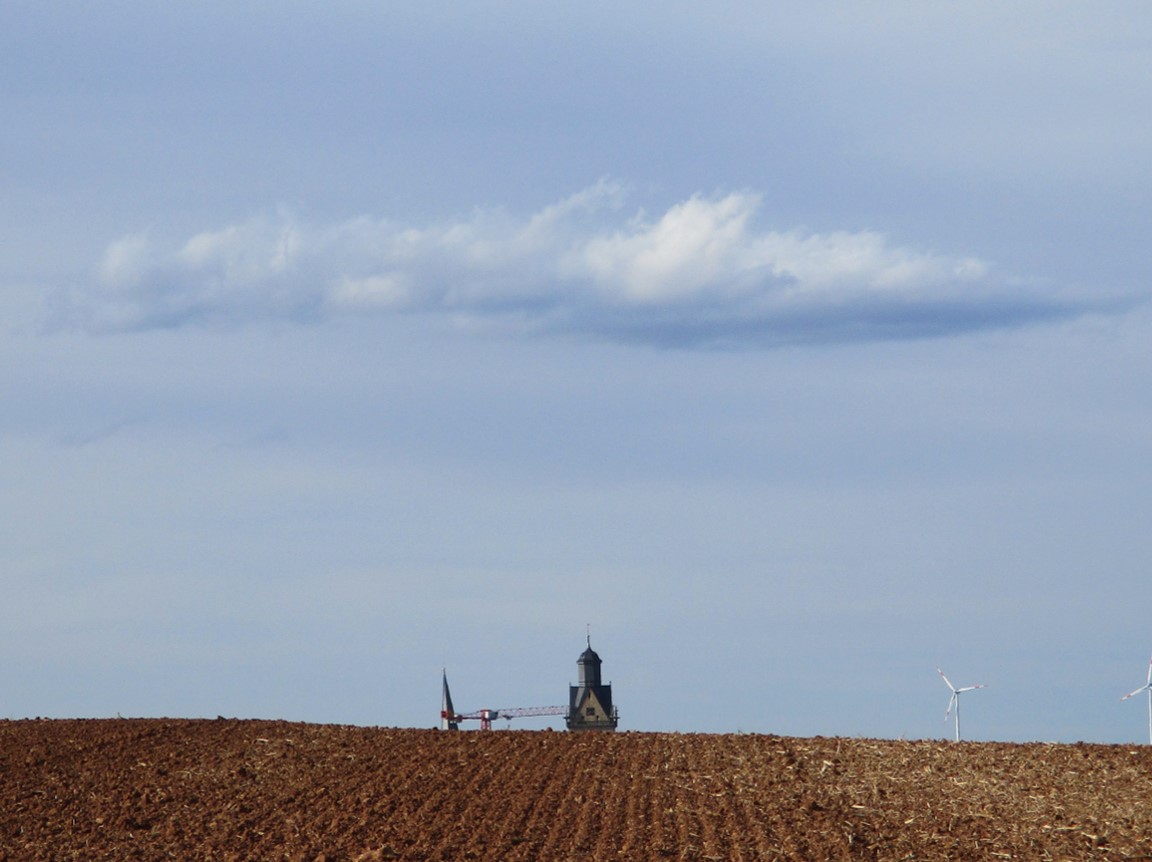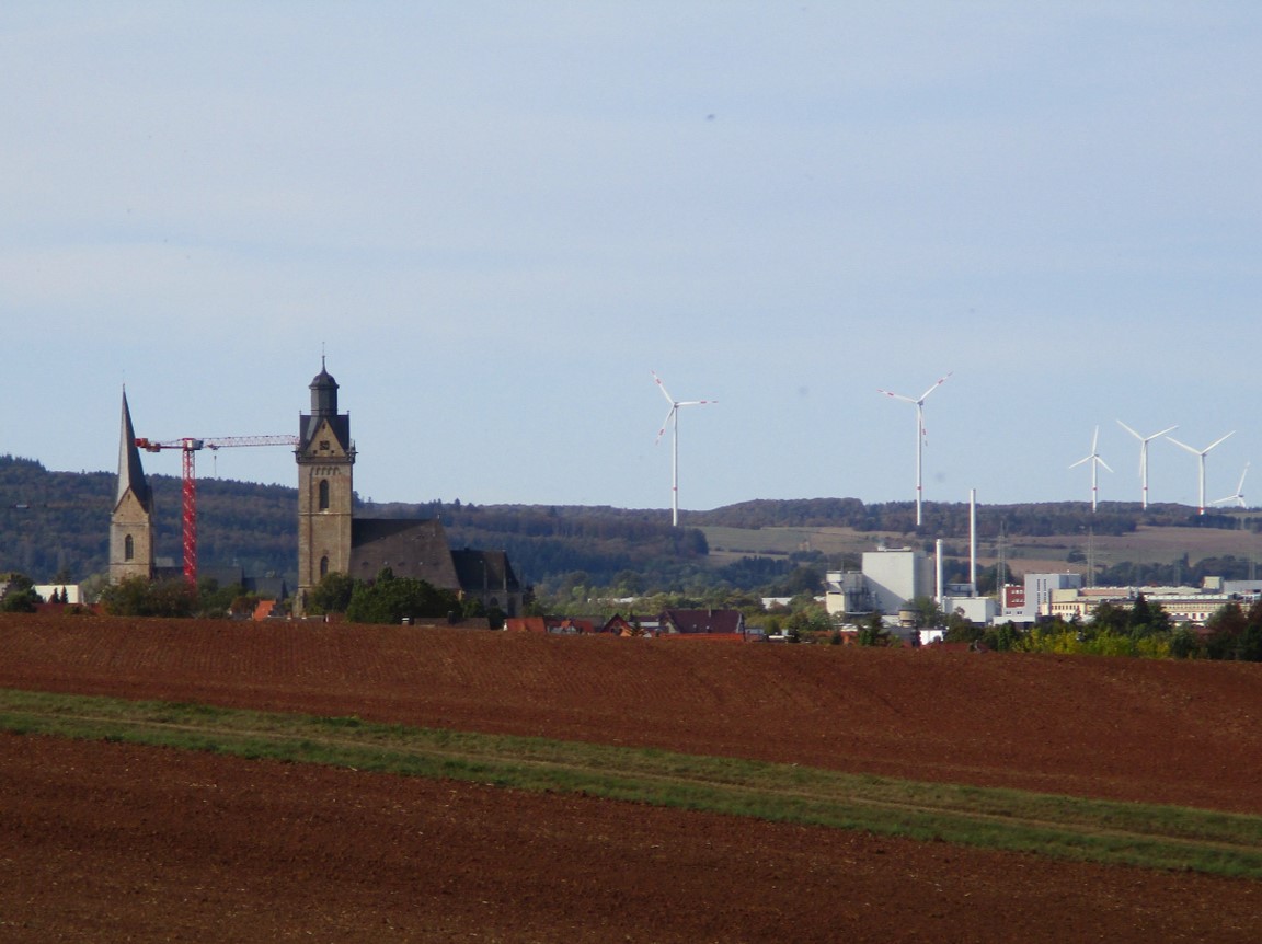 LandArt?! – Blick Richtung Korbach auf einer Wanderung um den Schanzenberg – besteht zwischen den Kirchen St. Nikolai und St. Kilian nun eine freitragende Verbindung, Laufbahn?