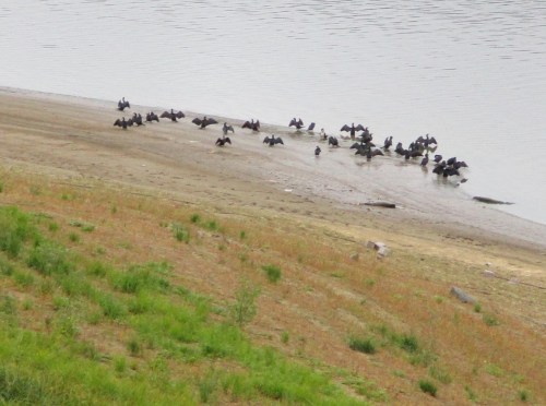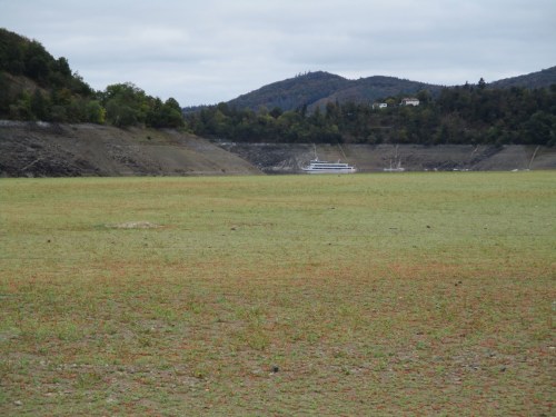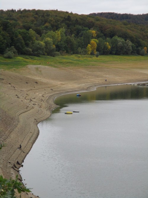 Dieses Jahr ist auch die Hopfenbergehochebene nur spärlich bewachsen. Über lange Zeit fehlte halt jeglicher Regen. – Die „Edersee“ ist schon wieder vor der Sperrmauer angekommen.