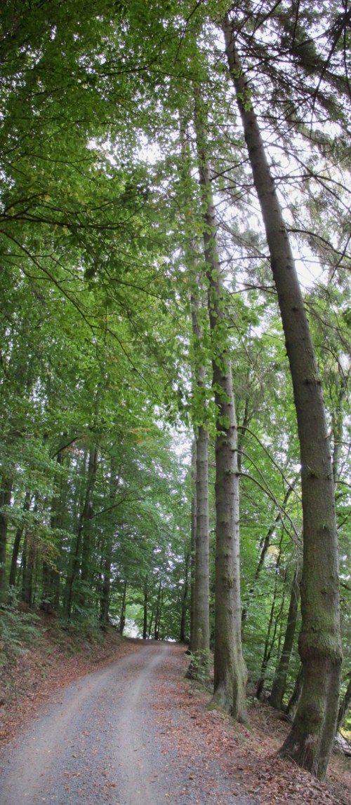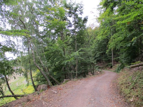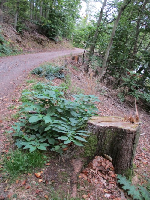 Der Nationalpark Kellerwald-Edersee ist primär Buchenwald. Wohl als Teil der Entwicklung sind an der Seeseite des Weges Nadelhölzer gefällt worden.