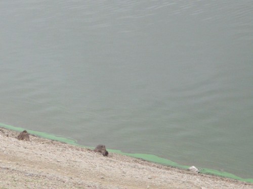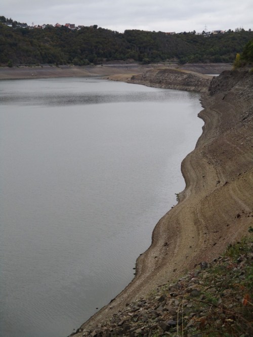 Unten angekommen. Dieser Schaum, so sagten mir Angler später, sei über Nacht im Sperrmauer-zugewandten Restseeteil entstanden.