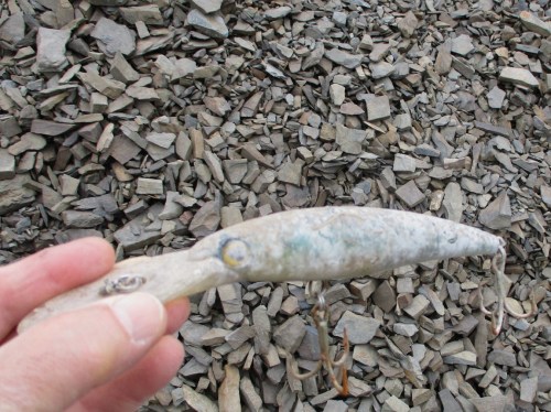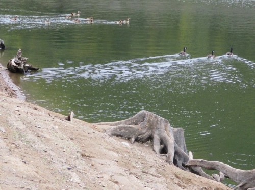 Reptilien, Drachen voraus. Dies ist die berüchtigte „Stukenkante“. An den alten Baumstubben wurde manch teures Angler-Utensil über die Zeit abgerissen. (An solchen Verstecken stehen natürlich bei Überstau auch große Fische!)