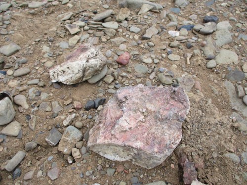 Ich wandere zurück – auf dem östlichen Hopfenberg sind allerhand Mineralien zu entdecken, bunte Steinvielfalt.