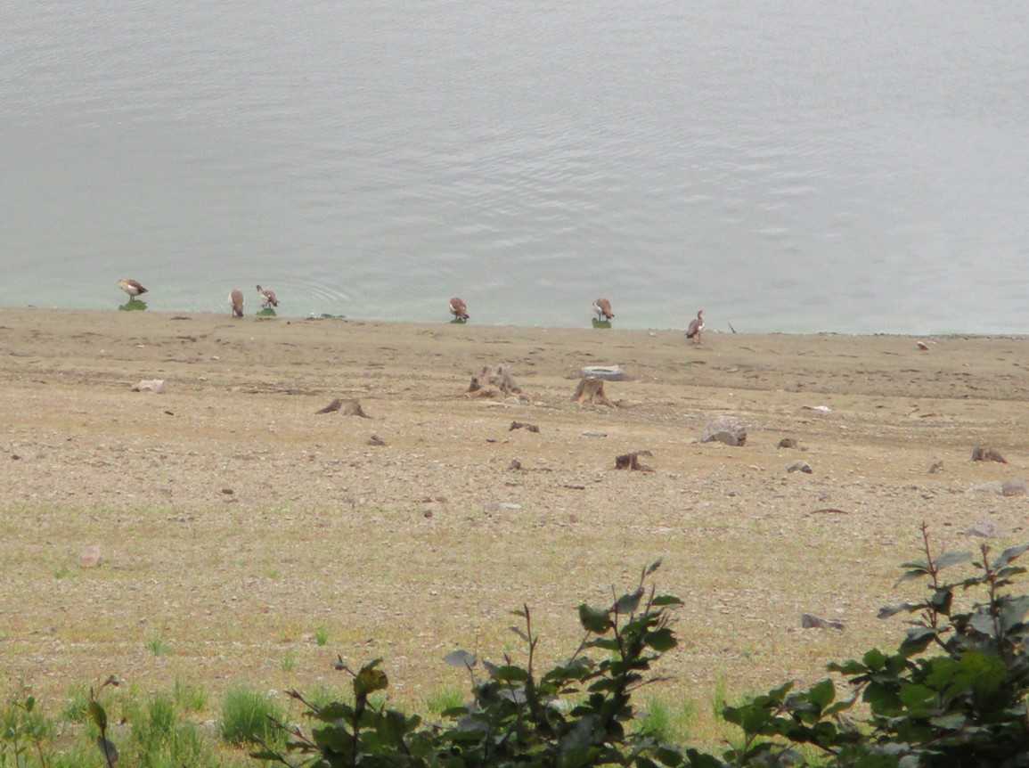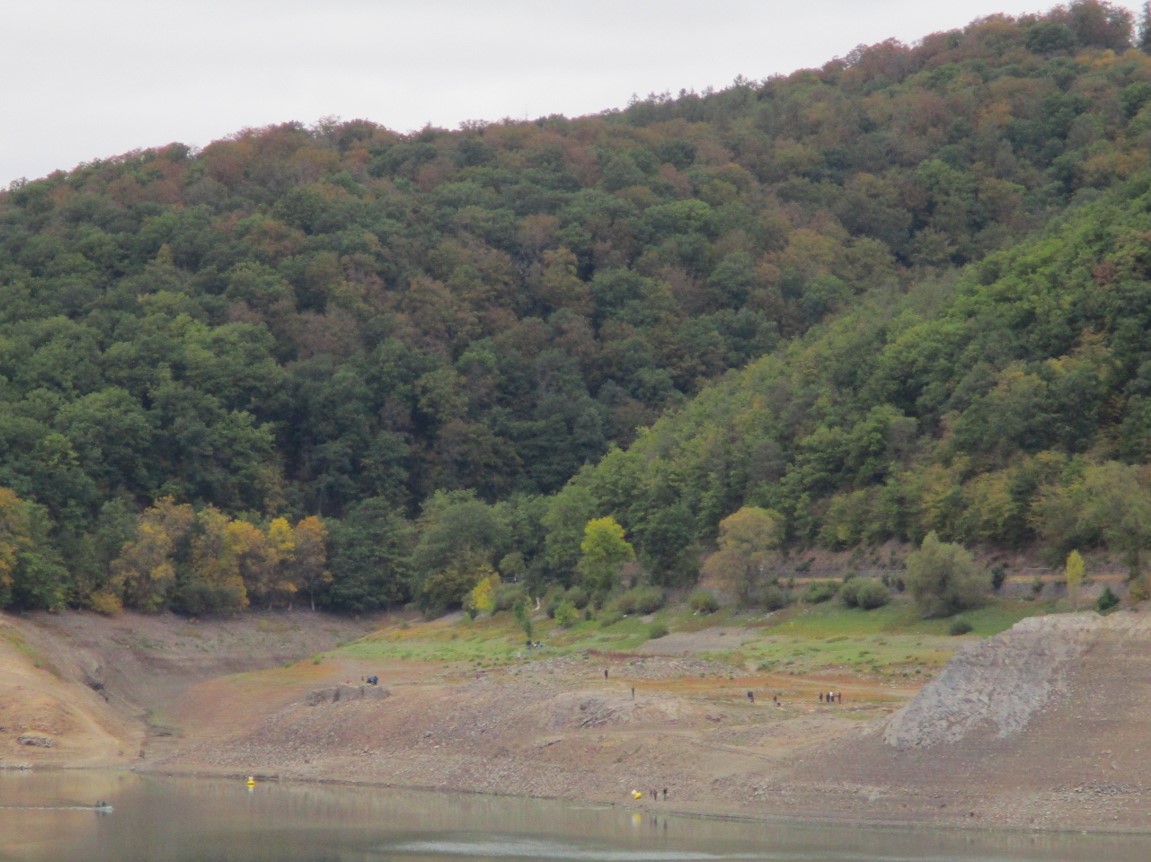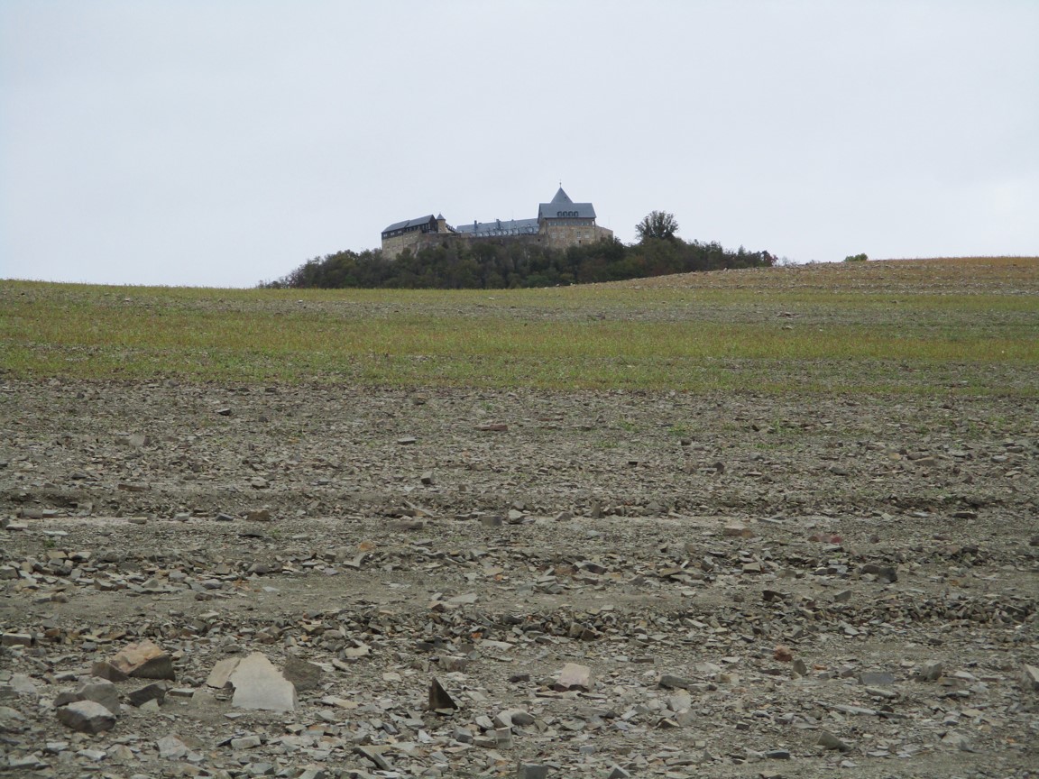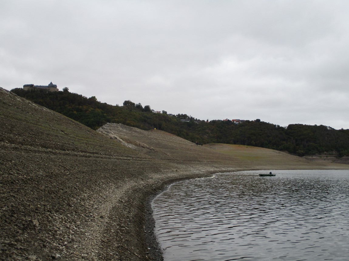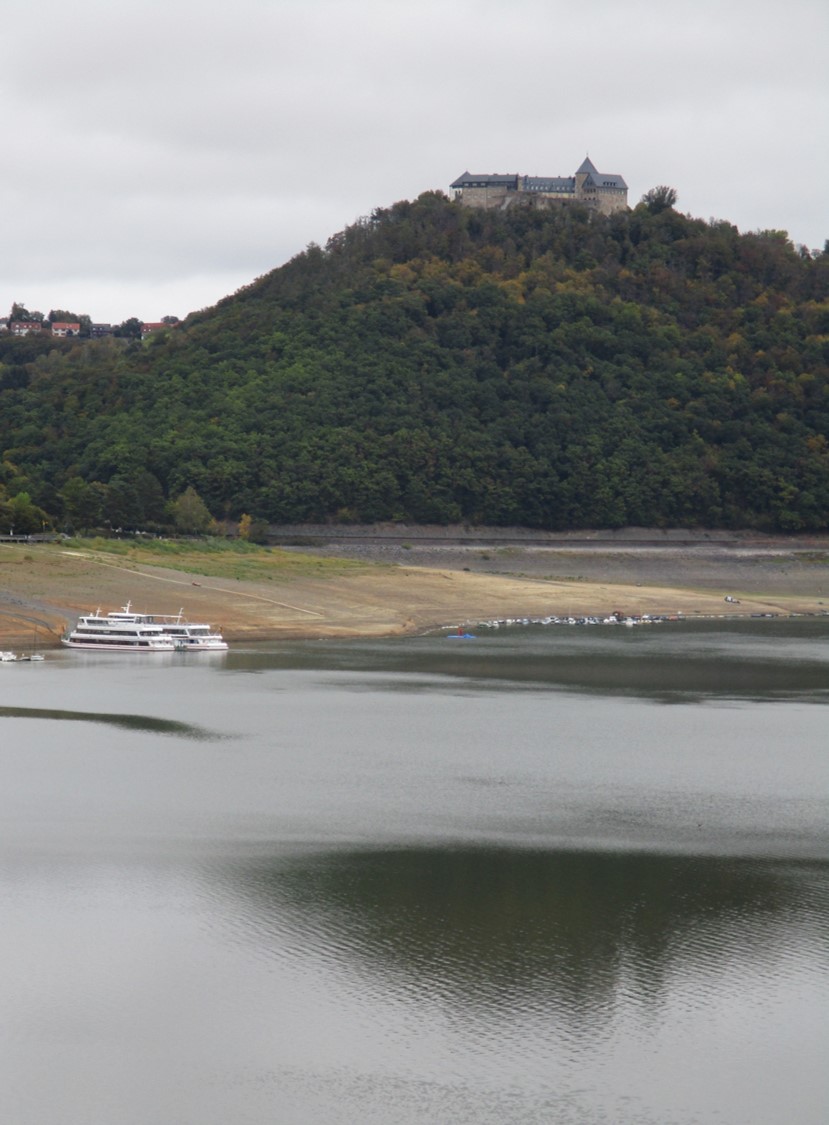 Dieses Jahr ist auch die Hopfenbergehochebene nur spärlich bewachsen. Über lange Zeit fehlte halt jeglicher Regen. – Die „Edersee“ ist schon wieder vor der Sperrmauer angekommen.
