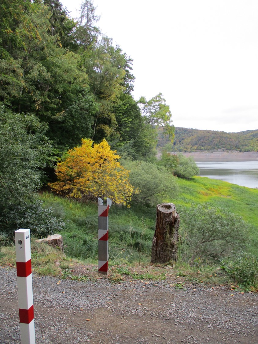 Der Nationalpark Kellerwald-Edersee ist primär Buchenwald. Wohl als Teil der Entwicklung sind an der Seeseite des Weges Nadelhölzer gefällt worden.