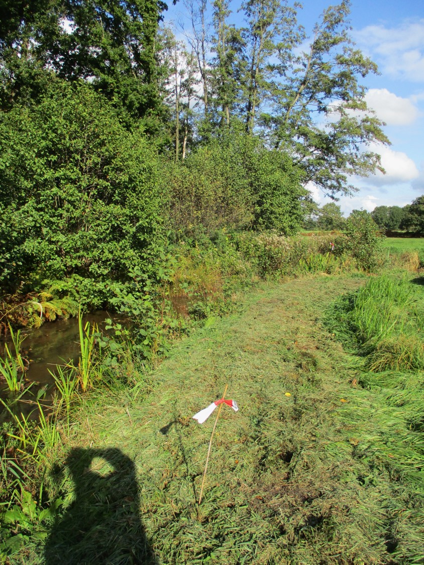 Die Strecke 2 an der Krückau ist weniger naturnah als die im vorigen Beitrag Beschriebene. Zwar verläuft auch sie an einer baumbestandenen Moränenkante zur Aue, aber die unnatürliche Verbreiterung des Bachbetts ist angesichts Nicht-Akzeptanz der die Ufer schützenden Bäume auf genutztem Privatbesitz stärker ausgeprägt. Dem entsprechend ist abgelagerter und zeitweise in Bewegung kommender Erosionssand als „Leichentuch“ für den Forellenbach ein Riesenproblem.