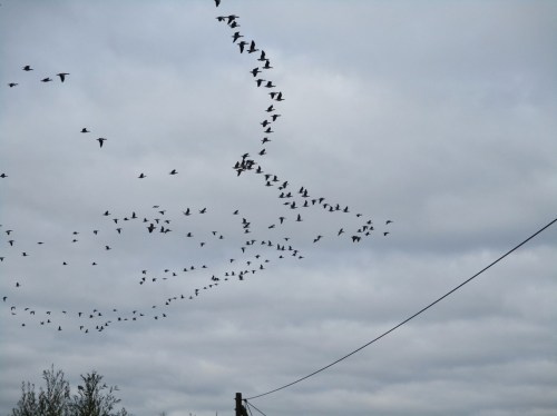 In jüngerer Zeit sind nicht so große Zahlen vor Ort zu beobachten – sei es, dass diese ersten Schwärme weitergezogen sind, sei es, dass sie zur Radelzeit zum Fressen irgendwo zwischen Elbe, Marsch und Geest unterwegs sind.