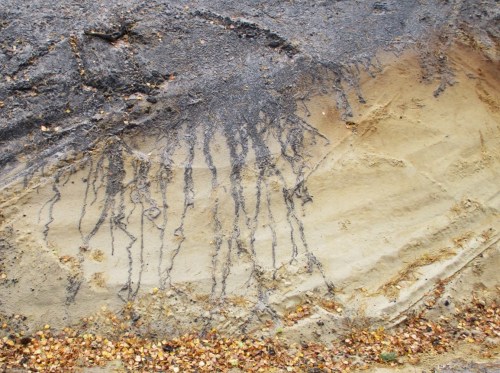 Auf einer Radrundtour Wedel – Hamburg, Klövensteen, Naturschutzgebiet Schnaakenmoor – Wedel entdeckte ich, frisch freigelegt, „Art by Nature“ – diverse Ansichten eines Bodenprofils. Nicht zuletzt wegen dieser euphorischen Antwort auf das Vermailen einzelner Fotos „… da strahlt das Bodenkundlerherz. Soll noch jemand sagen, Böden seien nicht ästhetisch!“ stelle ich die Aufnahmen gern ins Netz.