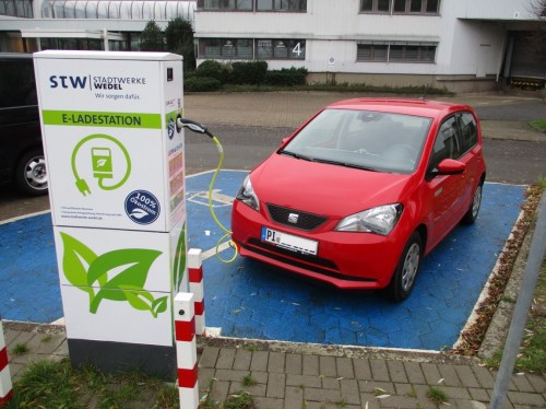 Wir entstöppseln den kleinen Stromer. 8 kWh während einer Stunde Elbe-Wandern sind geladen. Wir fahren ab.