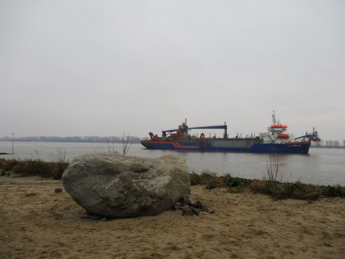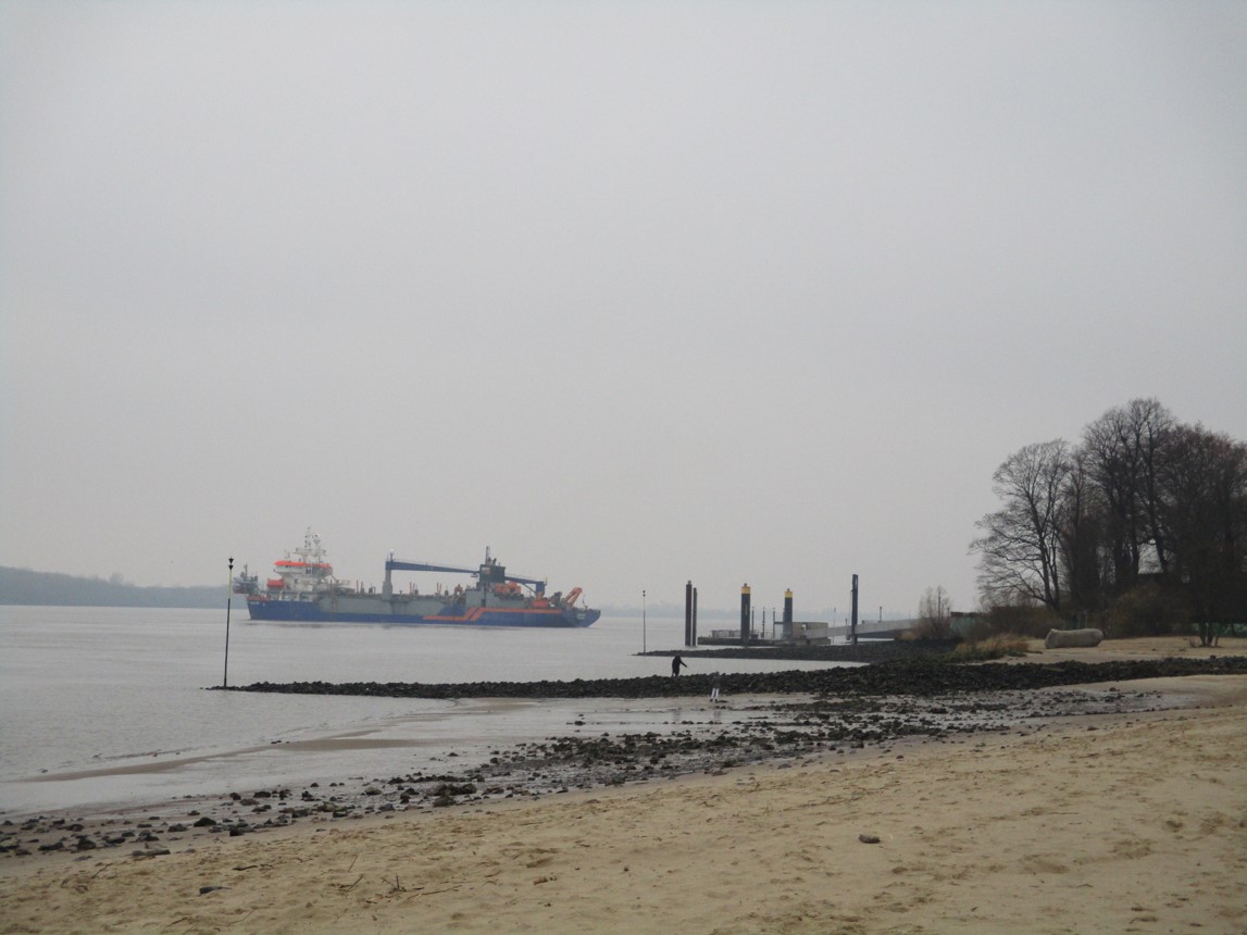 Eine Heerschar Bagger ist auf ganzer Strecke aktiv. Wie üblich muss sich das Geschehen nicht zwangsläufig erschliessen. Baggern im Hamburger Hafen – Verklappen an der Landesgrenze HH-SH oder: bei Helgoland. Wie kommen die Schadstoffe in die Nordsee, wenn sie nicht von der Elbe selbst transportiert werden. Baggern diesseits der Landesgrenze, Verklappen – je nach Wasserführung der Elbe – in Mündungsnähe. Baggern in Mündungsnähe (diverse Stellen), Verklappen vor Neuwerk oder dichter an Cuxhaven. Wer sich das Ganze näher bringen will, hat auf marinetraffic.com ganz schön zu tun – und dann der jahreszeitliche Wechsel … – Keine Bange, falls daraus ein persönlicher Schluss folgt. Es ist nicht ausgeschlossen, dass der zutrifft.