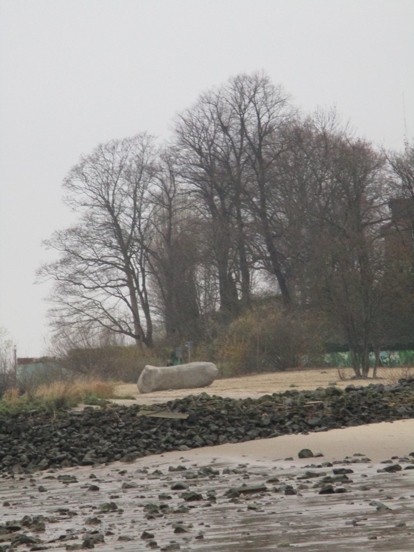Zurück Richtung Willkommhöft – der „Fährmannsstein“ erinnert mich von dieser Seite ein wenig an eine Schnäpel-Konferenz in Tönder (Ecco, Schuh vor der Fabrik).