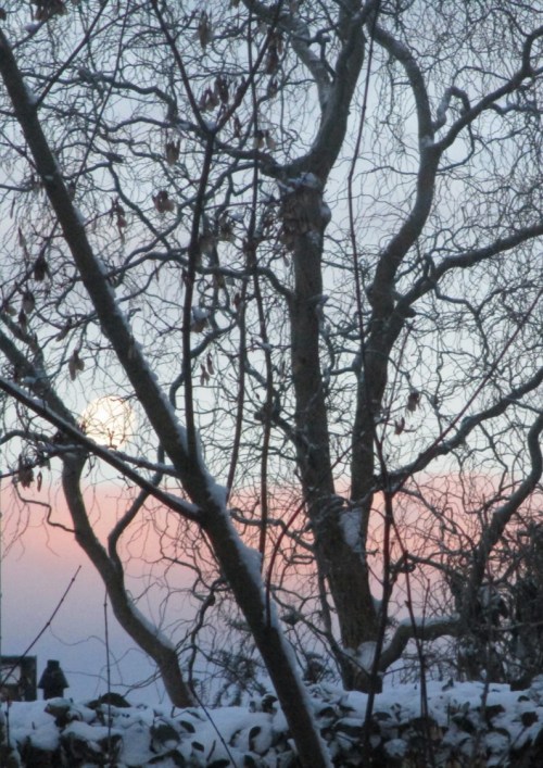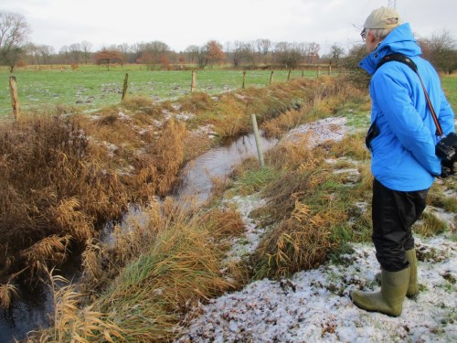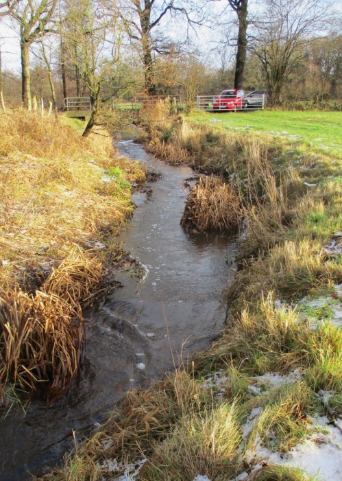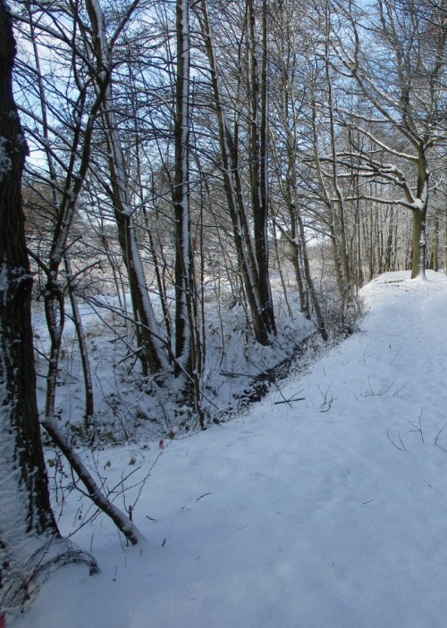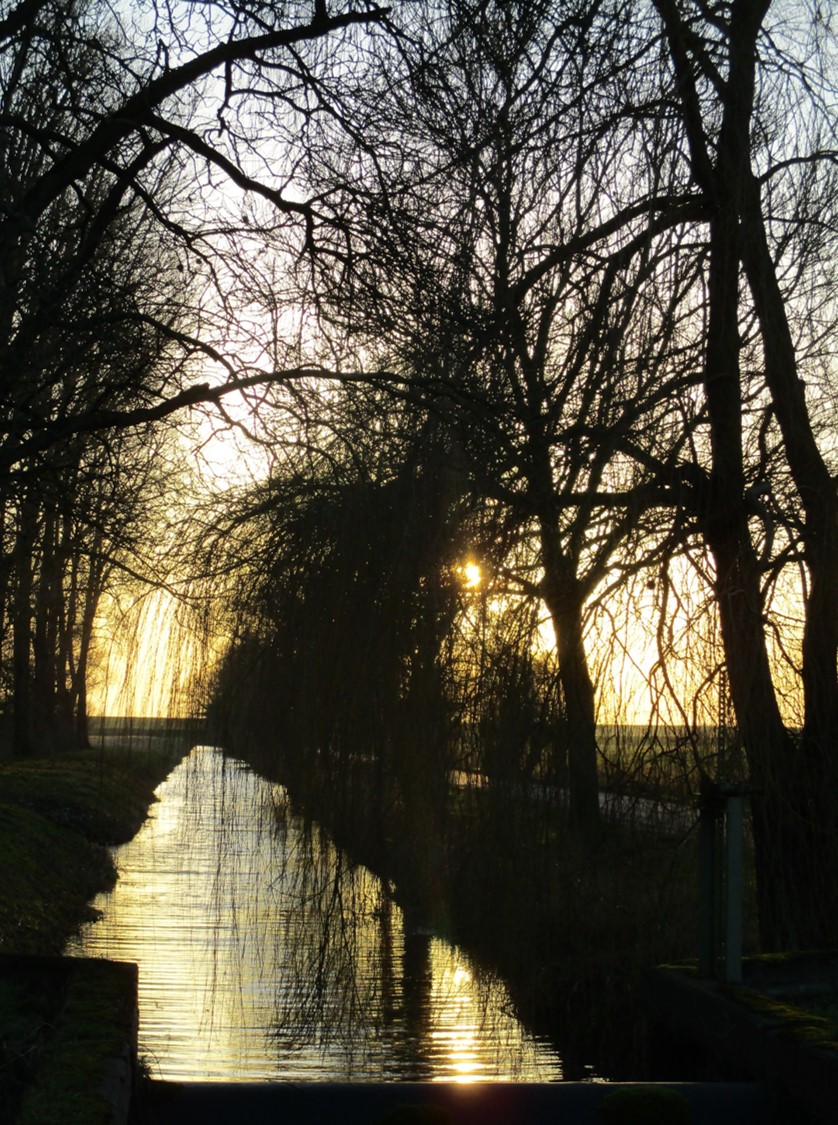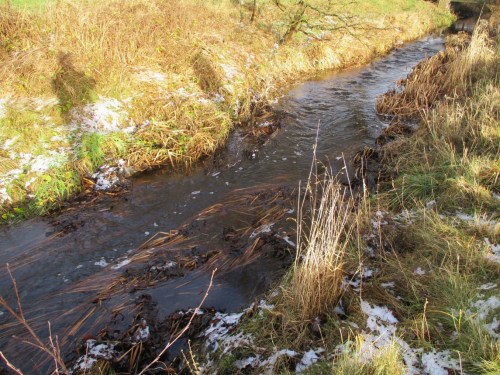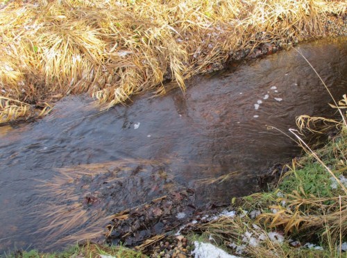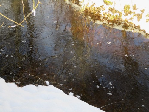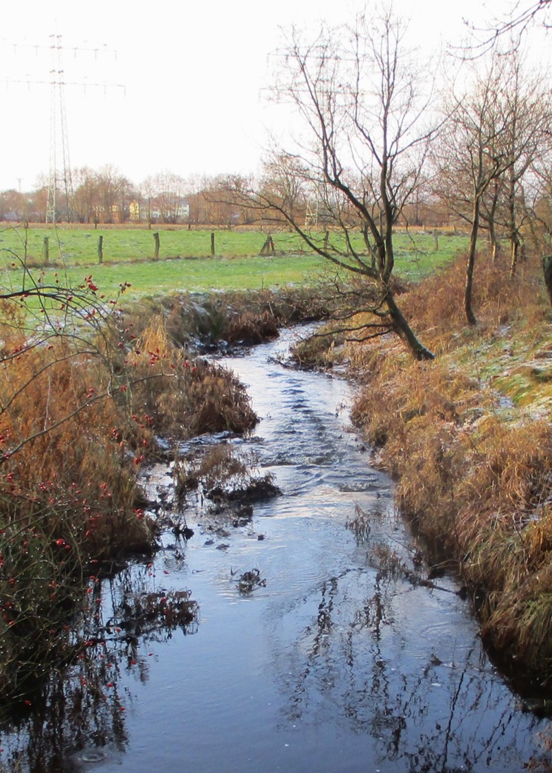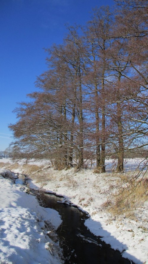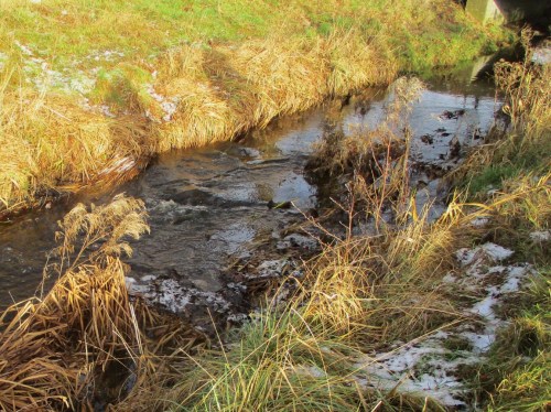 Es hat geschneit, die Sonne lacht. Ich meide Rodelberge und besuche eine seit 2017 nach und nach restaurierte Bachstrecke. Über die Lebensverbesserungen für Wirbellose und Fische hatte ich berichtet.