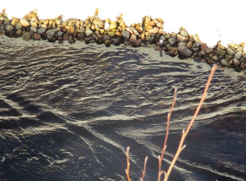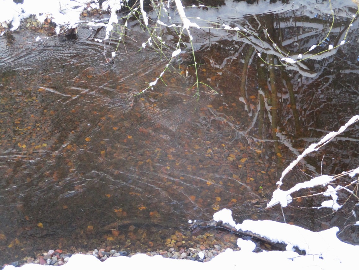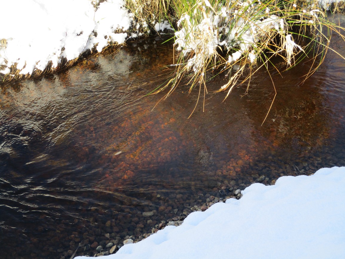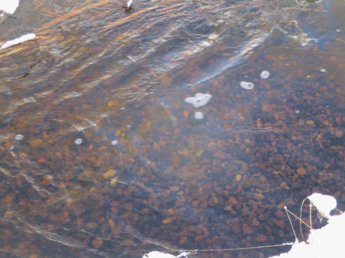 Das belaichte Kiesbett hier ist angesichts der „neuen“ Wassersäule per Auge noch ganz gut, im Foto kaum zu erkennen.
