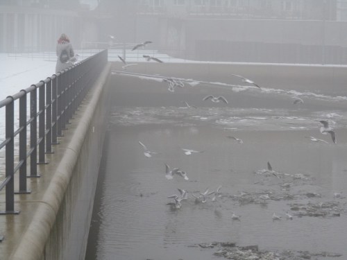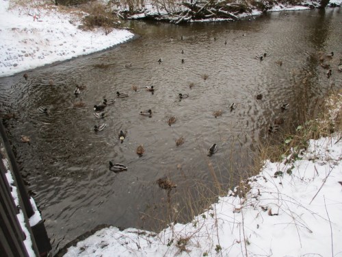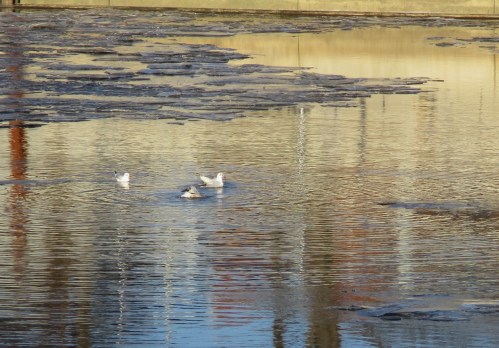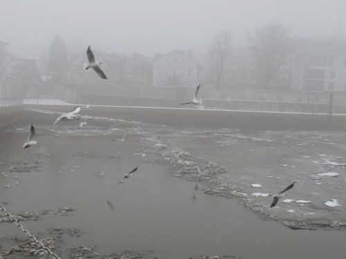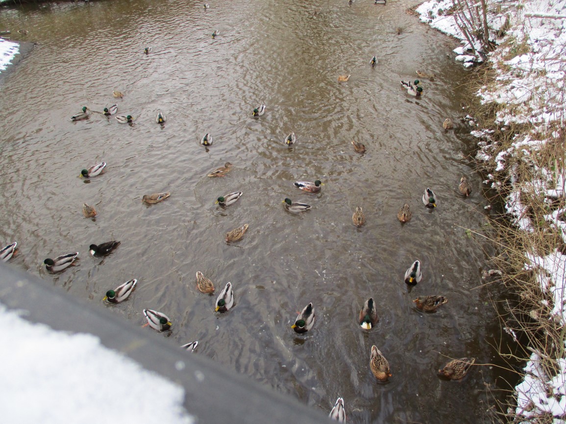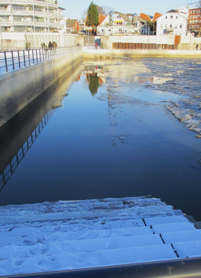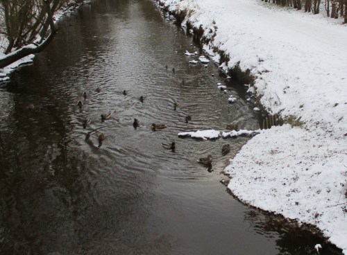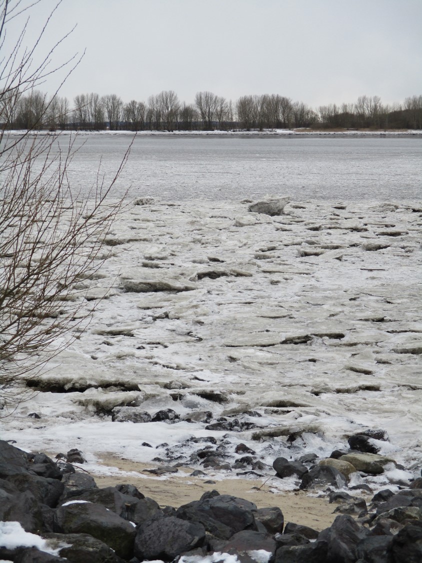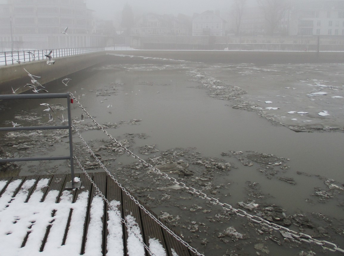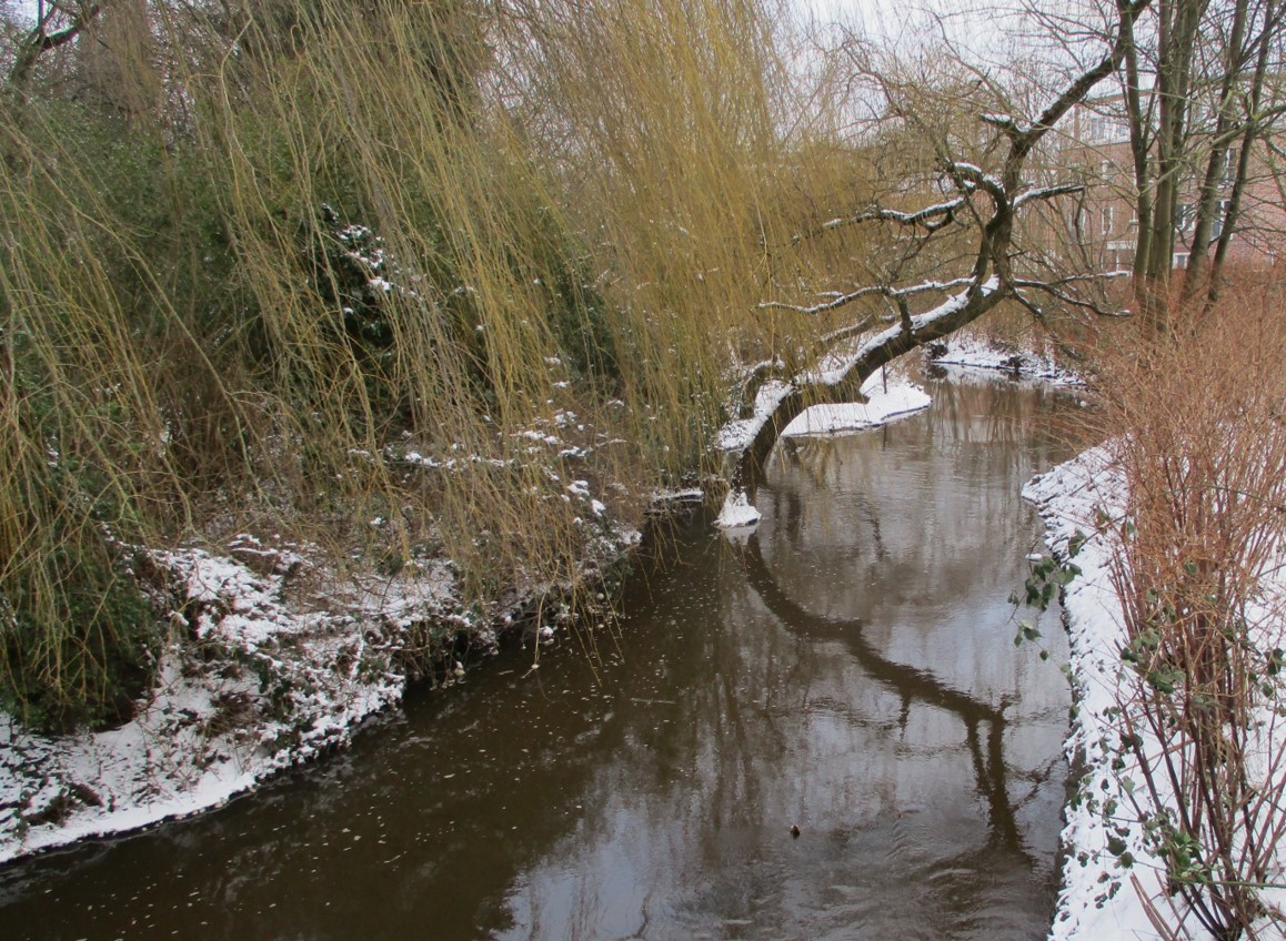 Am 14. Dezember berichtete ich über die Gestaltung erster unter Wasser vor den Depots angelegter Flächen. Am Vorweihnachtstag kam dann Niederschlag, der erstmals die Mittelwassermarke wieder erreichte, danach (ein Bisschen) Schnee, Regen, nochmal Schnee, Schneeschmelze. – Es sollten also inzwischen Veränderungen durch die Krückau erkennbar sein, die weiteres, notwendiges Handeln Richtung lebendiger Bach erkennen lassen.