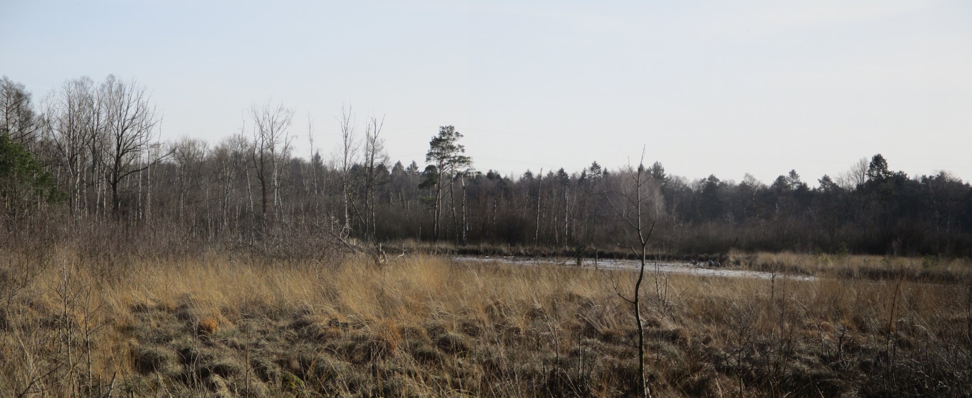 Das wegen Fehlens uferschützender Erlen am Südufer vorherrschende extrem überbreite Profil mit resultierender Sandwüstenei – statt munter fliessenden Bachs auf Kiesgrund.