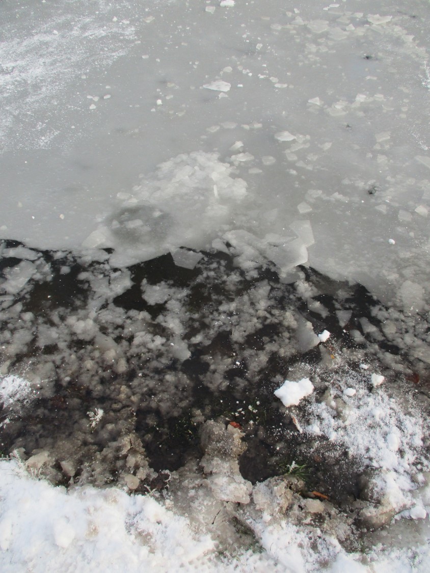 Nord- bis Südufer des Fahrwassers – laut knirscht das Raue, die bewegte Eisfront zwischen Fahrwasser und Mühlenberger Loch bei Richtung Tideniedrigwasser gen See fliessender Elbe.