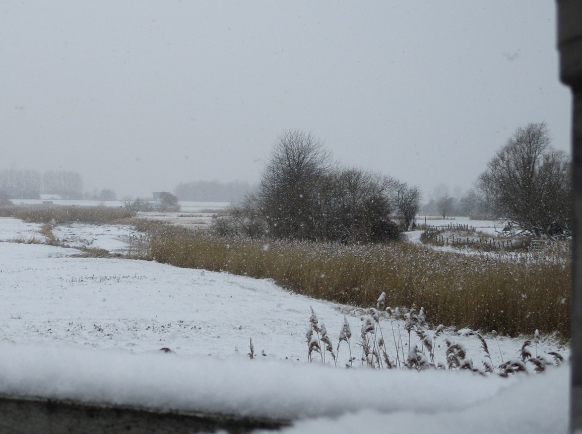 Blick Richtung Elbdeich – wer sich auskennt, sieht folgend auf`s Reet die teilgefrorene Wedeler Au bei Tideniedrigwasser.