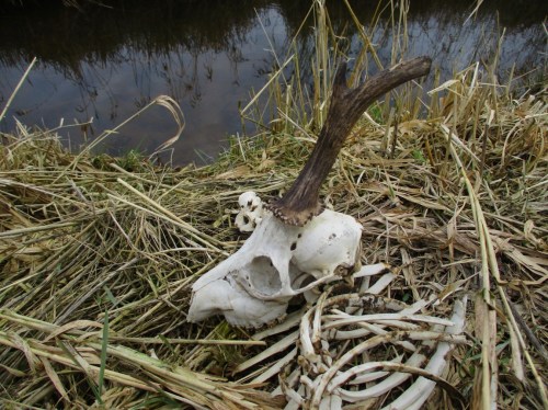 Wie auch immer zu Tode gekommen, angeschossen und nicht aufgefunden? Mir erzählte ein Jagdberechtigter, als ich ihn abends in Niedersachsen ins Gelände aktivierte (Ich hatte, mit Beifahrer, Tempo runternehmend bis Schritt, einen Rehbock, der am Straßenrand stand und just vor dem Auto lossprang, (fast nicht) berührt. Er überkugelte sich, rappelte sich auf, verschwand im Straßengraben in der Dunkelheit.), dass solche Tiere oft nicht gefunden werden. So war das auch damals, trotz Hund und starker Suchlampe. Scheinbar nicht oder kaum verletzte erleiden meist einen Leberriss und sterben oft genug an Verblutung im Schlaf. – Das mag auch das Ende unseres Funds gewesen sein.