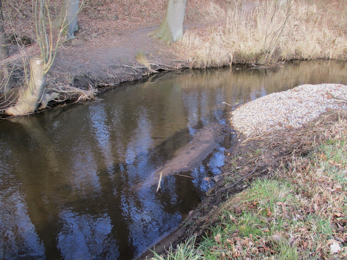 An einer überbreiten Strecke der Krückau hatten wir etliche Kies-Depots angelegt (Wasserverband Krückau mit Förderung des Landes Schleswig-Holstein, Bericht vom 21. Oktober 2020), um die Entwicklung und nötige Änderungen über die Zeit zu studieren. Die Krückau würde uns schon zeigen …