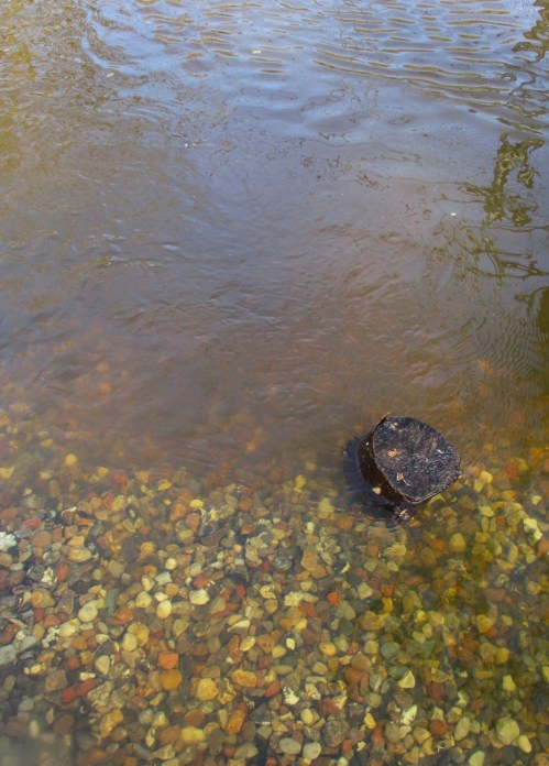 Eine Baumscheibe war auf dem Lenkkies gestrandet. In so jungem Zustand wollte ich noch keine „extra“ Störung zulassen.