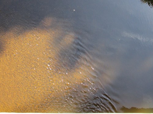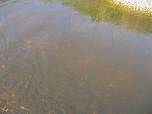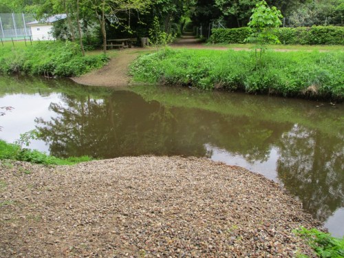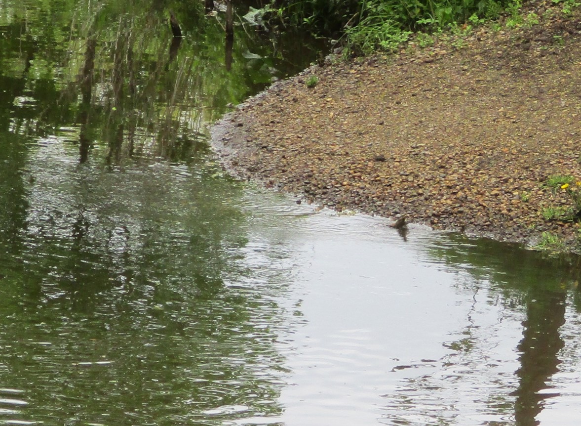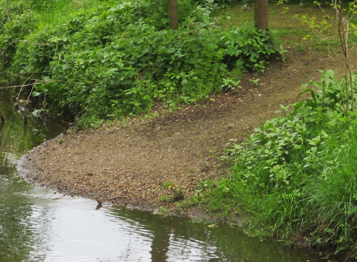 Das Einbringen des Kieses bringt einen Anstoß zu differenzierten Strömungsbedingungen in Längs- und Querrichtung. Daraus erfolgt Strukturieren der vorher eintönigen Sohle hin zu unterschiedlichen Lebensbedingungen. Dementsprechend reagiert die Lebewelt mit ihrem nun in Arten- und Individuenzahl zunehmenden Vorkommen. – Ein vorbeikommender Spaziergänger ist begeistert, wir auch.