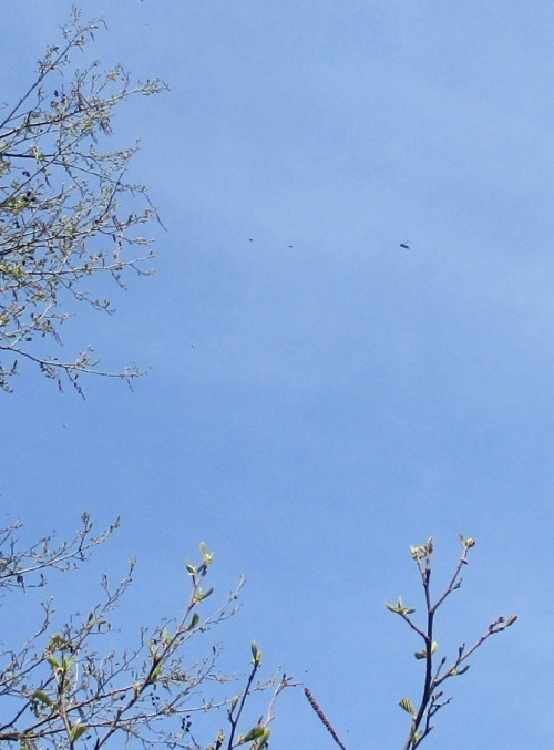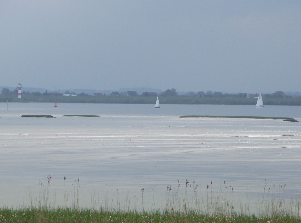 Weisse Schale, Totale – die ganze Zeit, verdrängt von Konzentration auf Leben im Wasser, kribbelt und krabbelt es irgendwo, es kitzelt auf der Haut: vorn eine Schlammfliege.