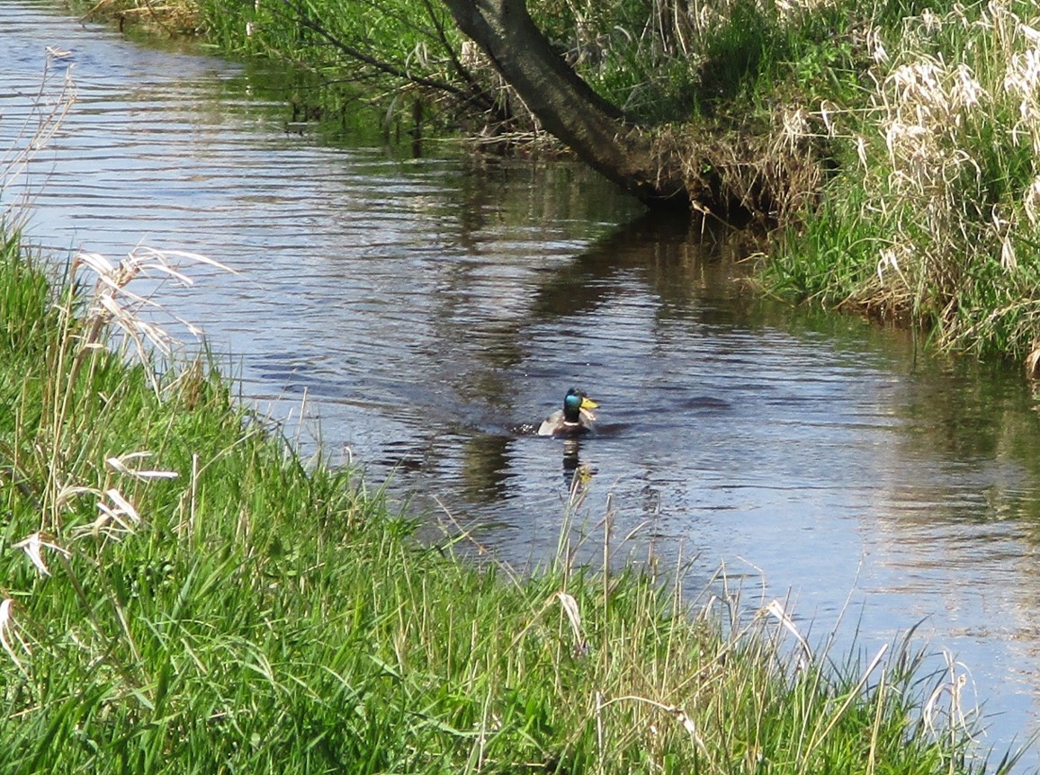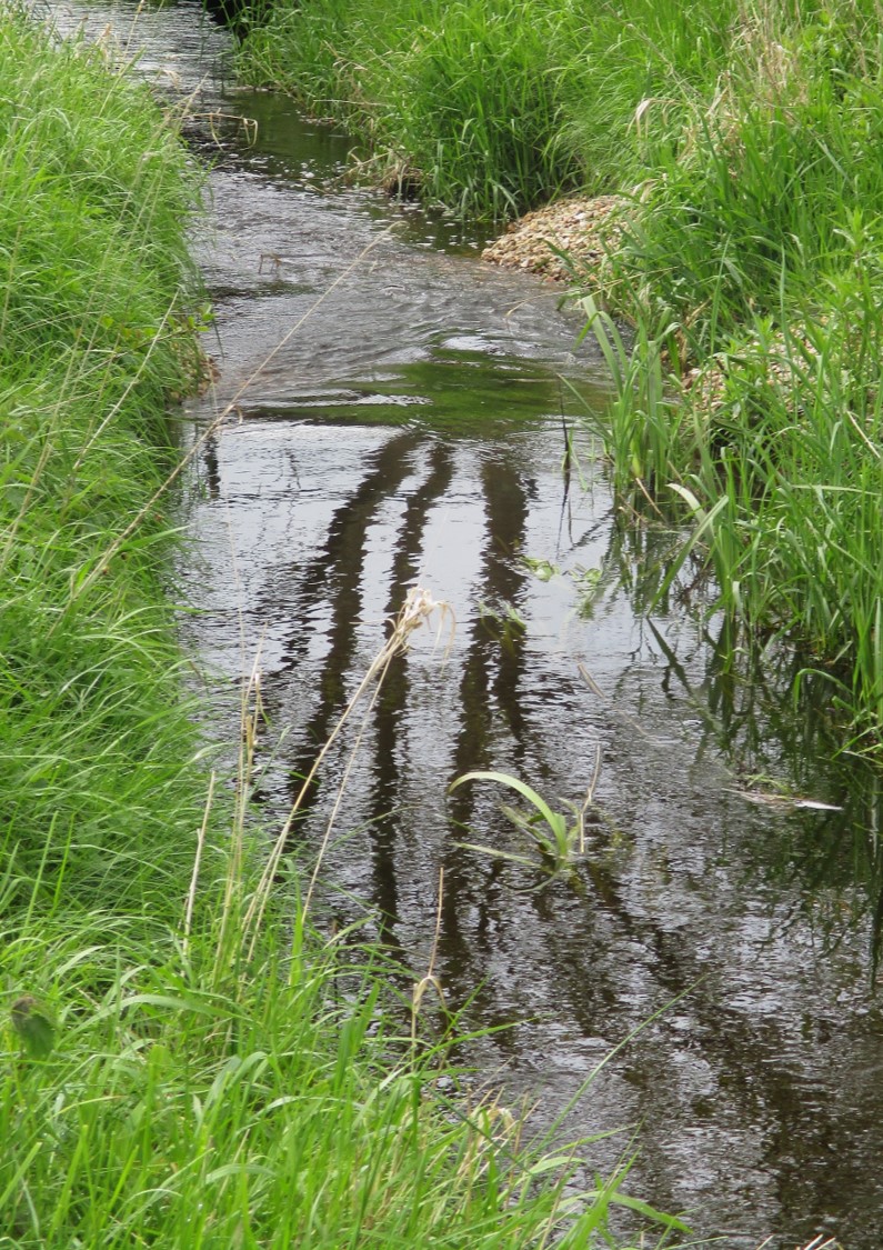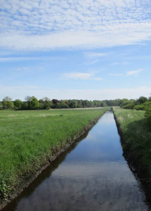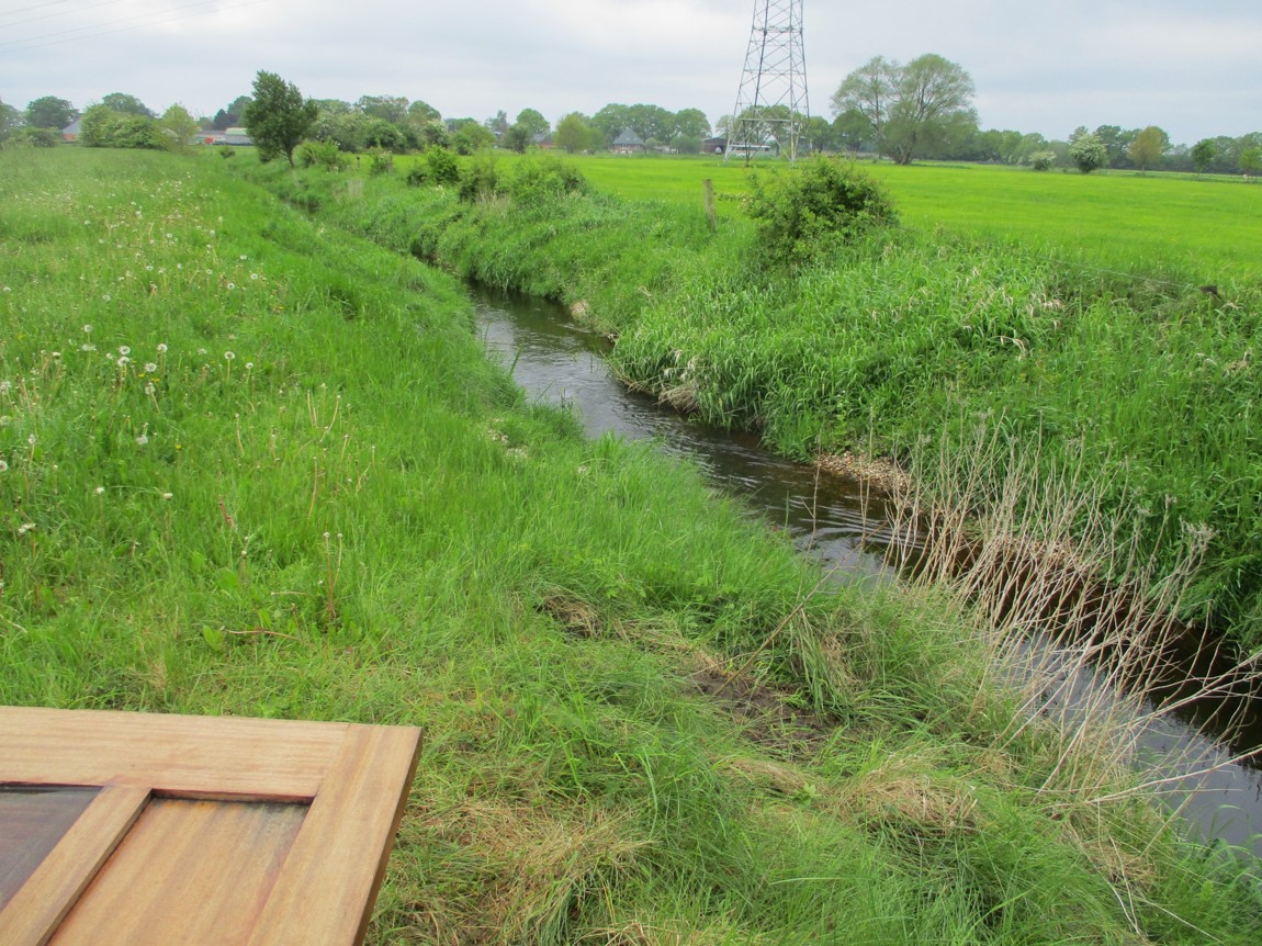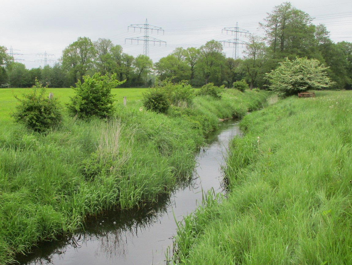 Die Moorbek schlängelt sich jetzt in ihrem früher gleichförmigen Bett mit Niedrig- und Mittelwasserprofil.