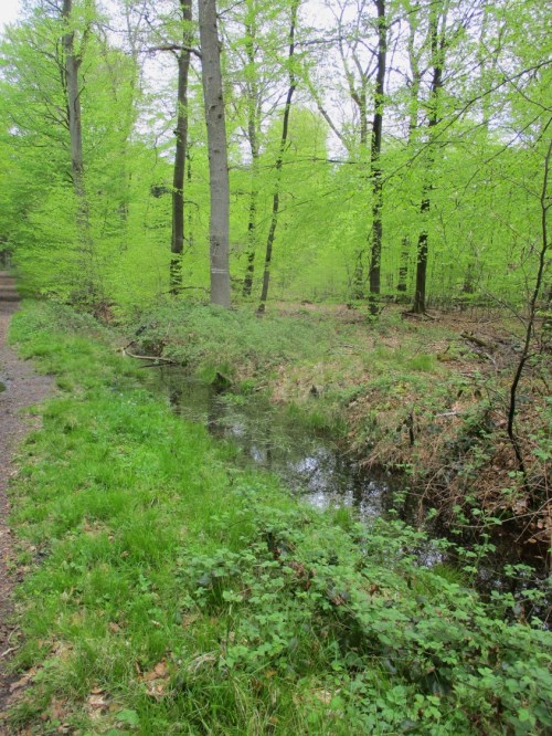 Durch Frühlingsbuchenwald, klimagerecht feucht gehalten, gehen wir zurück.