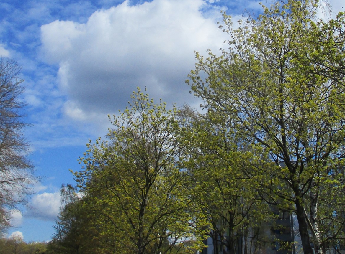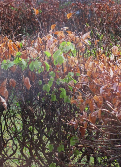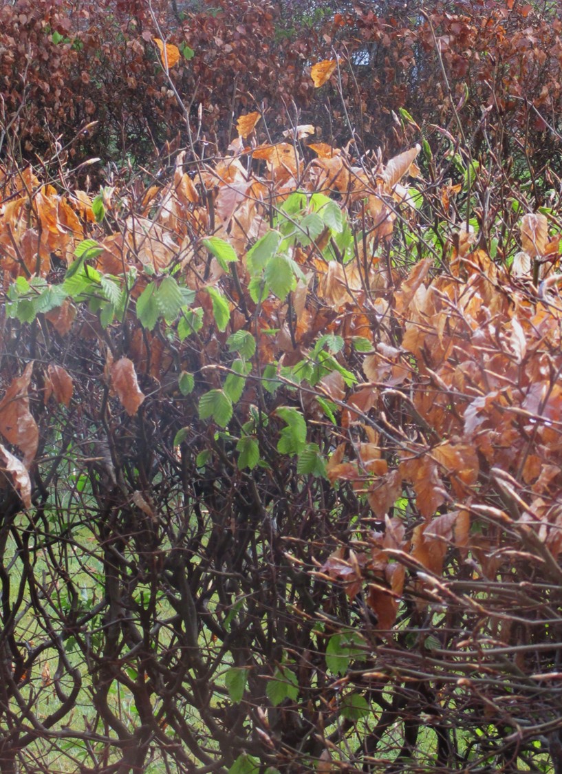 In der Nachbarschaft grünen, ganz anders als die vielen Buchen anderswo, bereits seit einer Woche 2 vorwitzige Buchen.