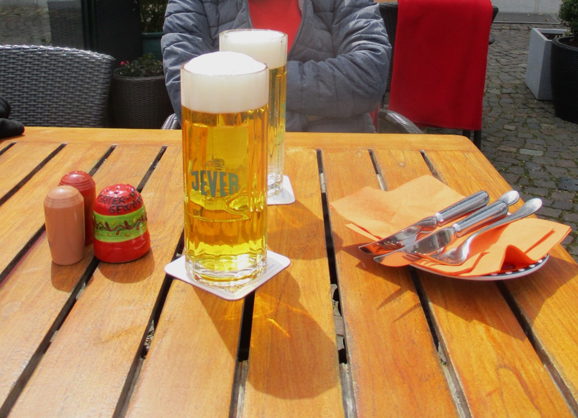 Das nur nebenbei. Im Angang war mir etwas aufgefallen. Es wurden Kissen auf Draussen-Stühle gelegt … – Ja, man könne unangemeldet kommen („Für morgen, Sonntag, lieber vorbestellen.“). Erster Tag der Öffnung – Aussengastronomie „geht wieder“.