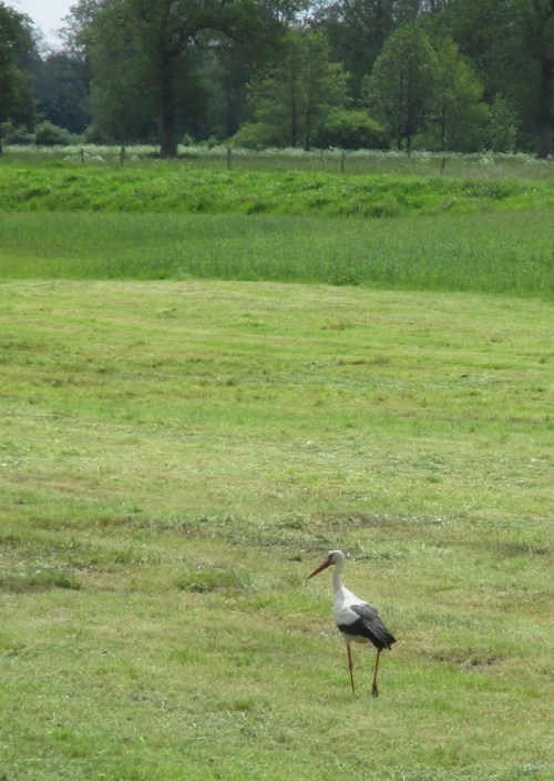 Die Störche wissen das, sind keine Vegetarier. Wo sich wie hier, es sind inzwischen 10 Störche auf dieser Wiese, solche Mengen zusammenfinden, gibt es einen Grund. Als diese Art des Mähens aufkam, nannte man das „Kreiselmähermassaker“ (neuerer Link aus der Schweiz für internationales Thema; mal sehen, wie lange der verfügbar ist).