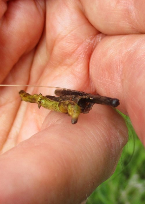 Als wäre das Ganze vom Architekten geplant: Häuschen aus Sand, drangepappt zwei Pflanzenstängel – Stabilisatoren, Lenker in der Strömung.