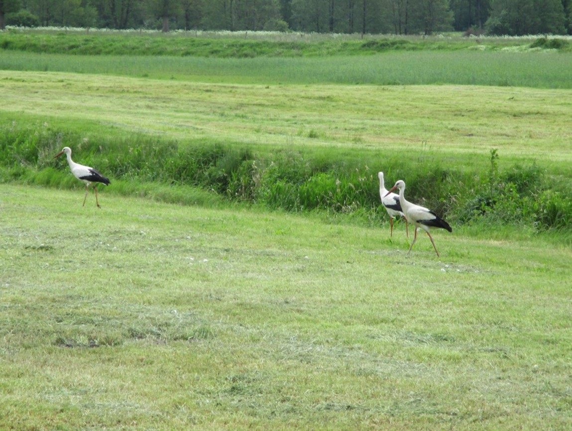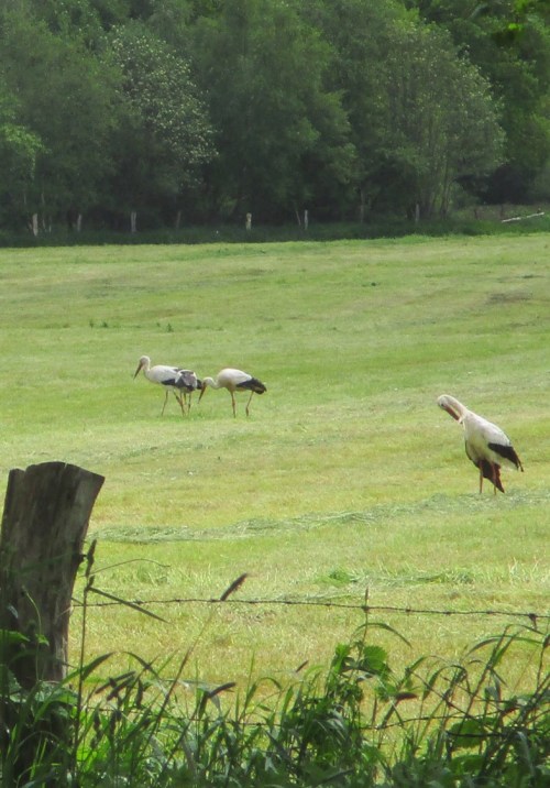 Die Störche untersuchen den Salat – „Fleischsalat“. Wir können uns vorstellen, dass ihr, offensichtlich ergiebiger und schmackhafter Salat nicht aus Wurst und Mayonaise besteht. Es dürfte eine bunte Mischung aus Insekten, Amphibien, Reptilien und Kleinsäugern sein. – „That`s life.“ oder „Wo viel Leben ist, ist auch viel Tod.“.