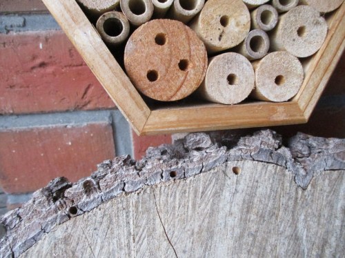 Die Scheibe Schwarzerle scheint interessanter als das Insektenhotel.