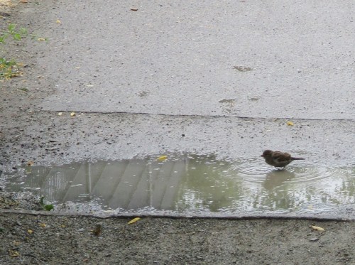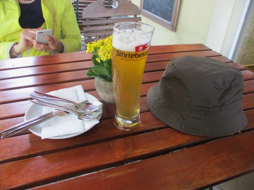 Gelegentlich wurde der regenfeste Hut gebraucht. Gleichwohl war das Mittagessen in der Aussengastronomie gut möglich.