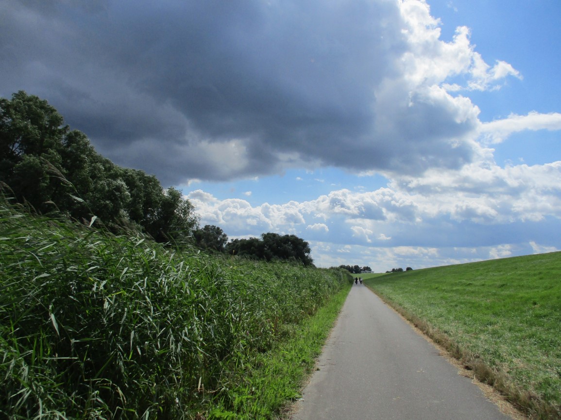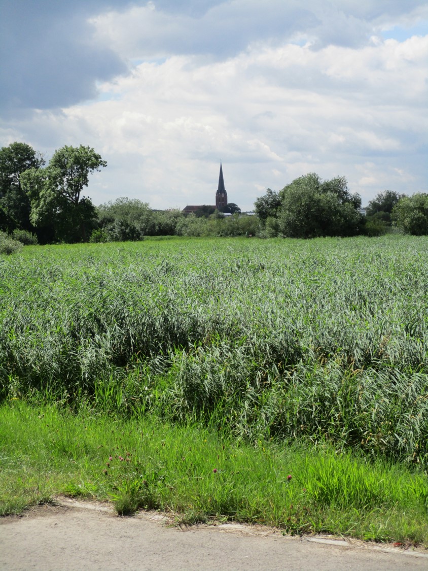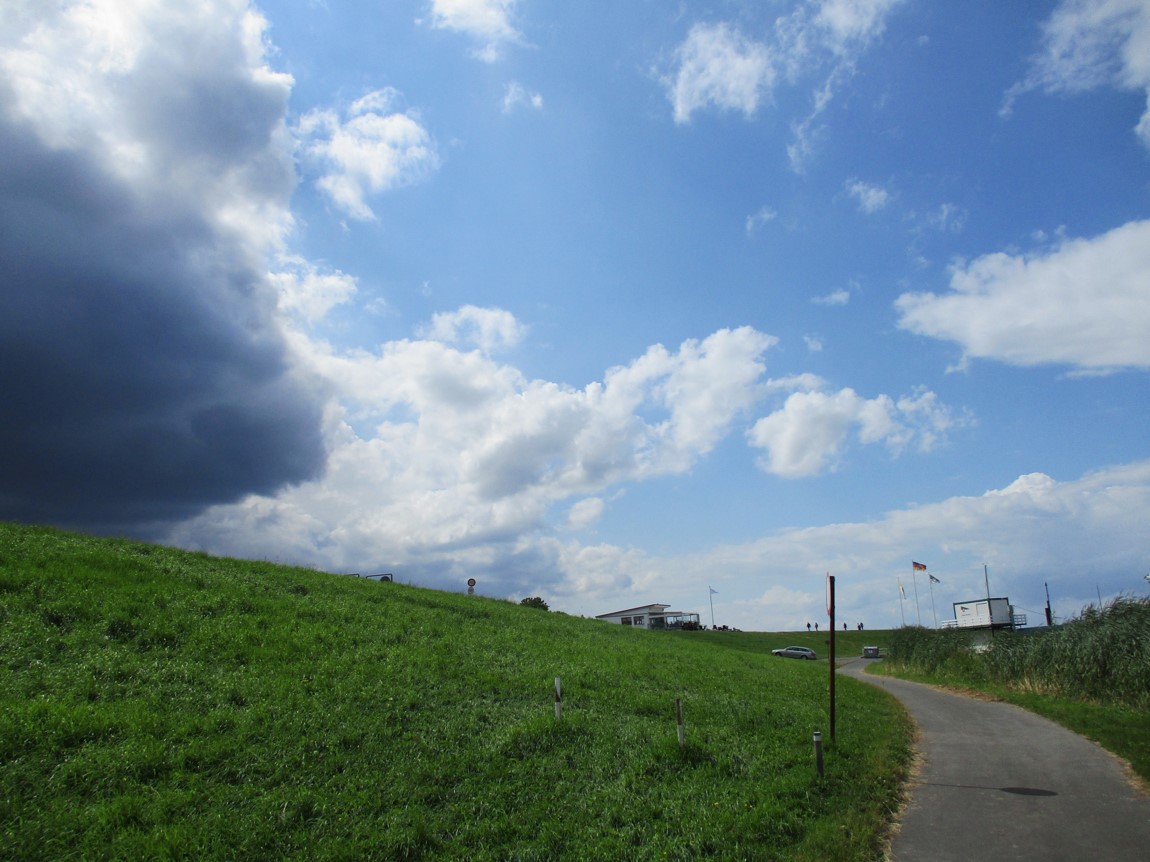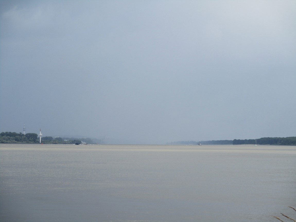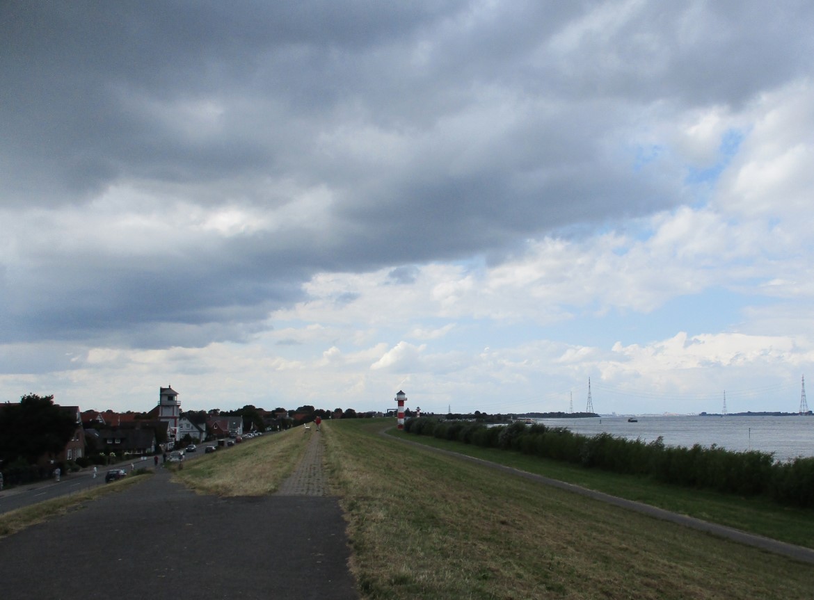 Vom brodelnden Wetter war ja vorn und in etlichen der vorigen Beiträge zu lesen. So entschloss ich mich, nicht wie vorgesehen in Pinneberg zu Mittag zu essen, sondern angesichts von 45 bis 60 Minuten anstehender Rückfahrt eine geeignete Stätte in Wedel anzuradeln. – Das stellte sich als segensreich heraus.